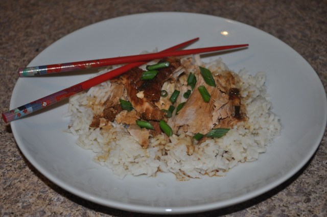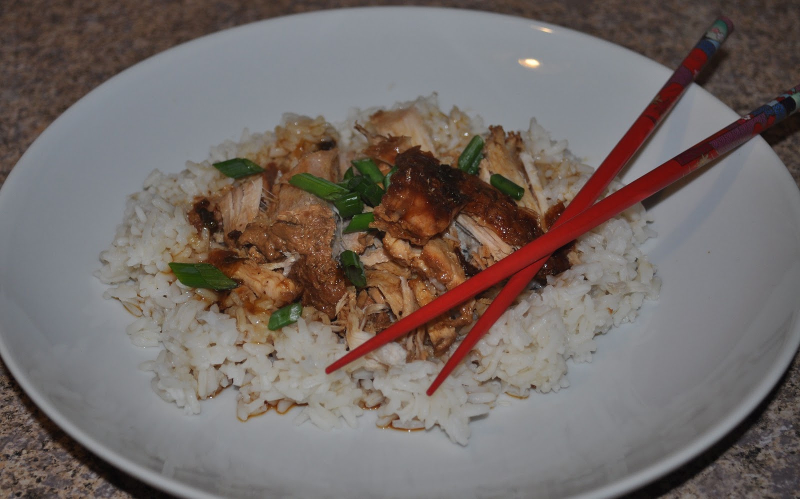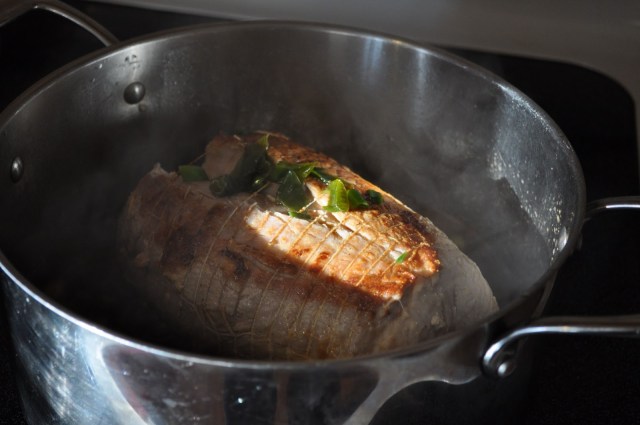 3) Strain the juices off and skim the fat. Served the juices with the sliced pork roast over steamed rice.