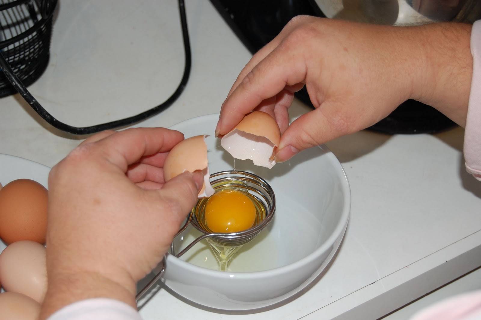 All I used for this meringue was five fresh eggs from our hens and 1 1/2 cups of sugar.