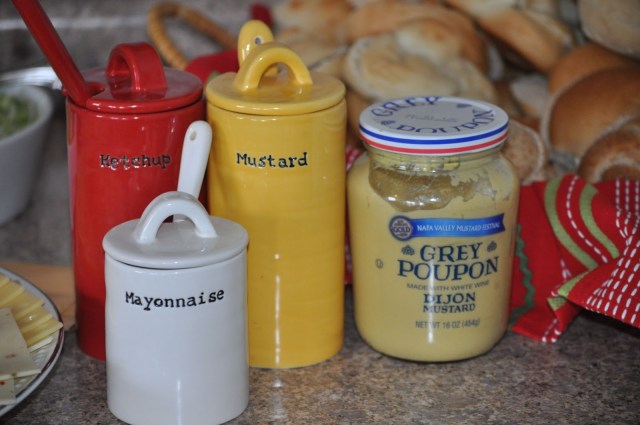 There are a variety of condiments for burgers, so pick your favorite and go with it.  Keep it super simple and serve them straight from the bottles, or dress up your buffet with speciality condiment jars.