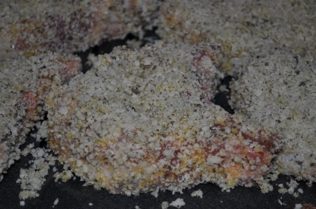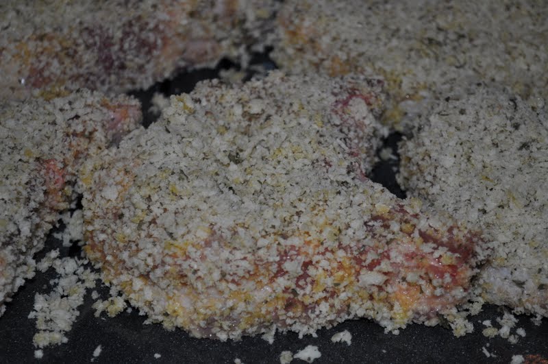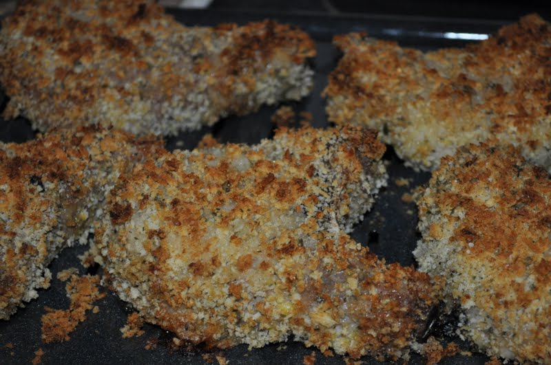 While shopping at Greenlife Grocery a couple of weeks ago, I picked up the most wonderful looking Iowa pork chops. With very little fat to trim, these looked really good! Instead of dipping them in egg and buttermilk and battering them up to fry, I dipped them in lightly beaten egg whites, and dredged them in Panko (Japanese bread crumbs), sprinkled with a little sea salt and black pepper.