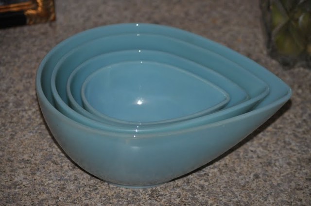 So, when my mother-in-law (who often feeds my vintage desires) offered me this rare set of four Fire King nesting bowls that she had acquired, I couldn’t say “YES!” quick enough!