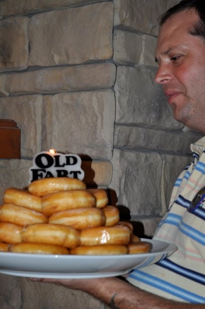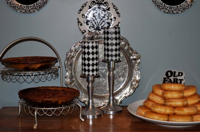 As for Audley’s birthday dessert, nothing makes that man of mine smile more than bourbon-pecan pie and doughnuts, so this was his “cake”.