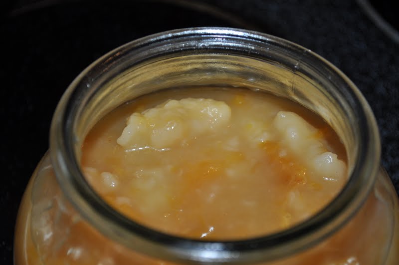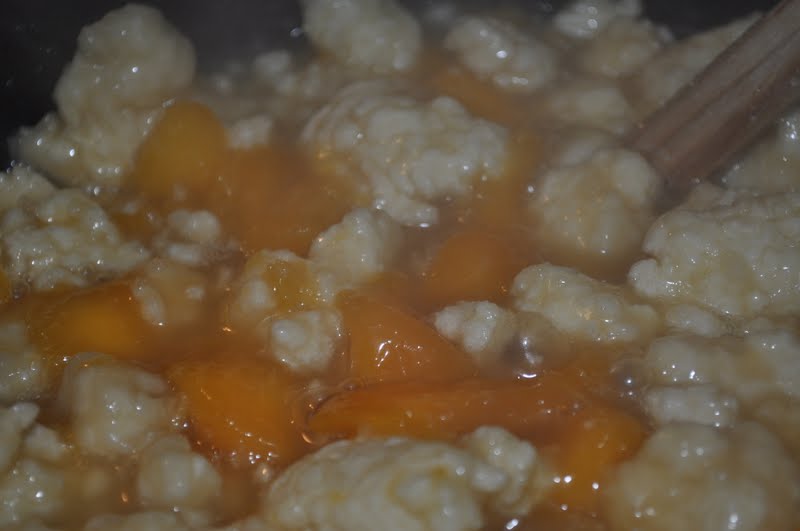 Mother-in-law had surgery last week so for dessert one night after I had cooked for her I served up some of those delicious peaches in the form of dumplings so she could savor the sweet flavor of my peaches. Audley in all of his silliness asked me if that was anything like chicken-n-dumplings and I responded with “now that you mention it, yes!”  It’s the same concept; you make a peach soup and add the dough.