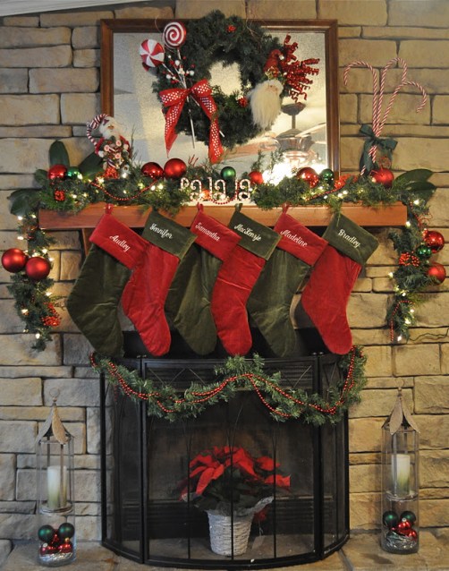 Our mantle is always one of my favorite places to decorate for Christmas.  I love our rock fireplace with it large oak mantle.  It is a lovely focal point in the living room which makes me want to take extra care with it’s adornment.