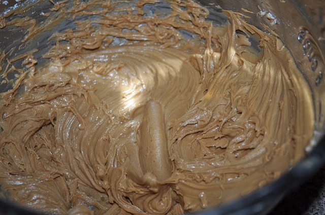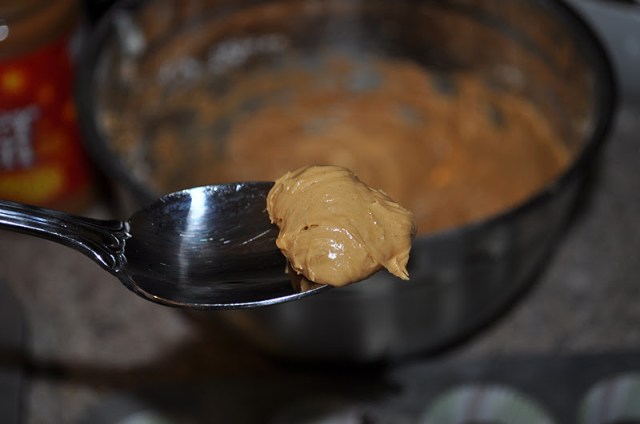 Make your peanut butter center by mixing together one cup of creamy (or chunky, if you prefer) peanut butter, 1/3 cup powdered sugar and two tablespoons softened butter.