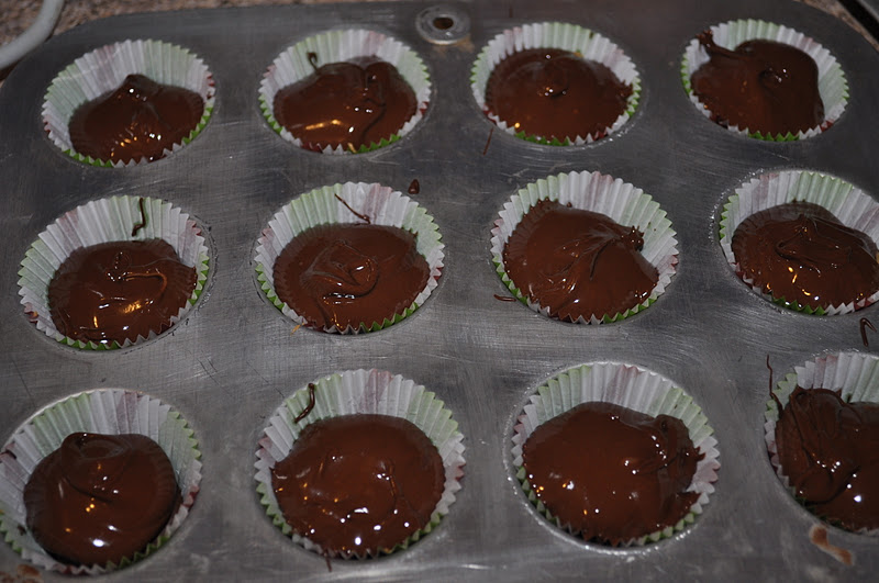 Finally, using your remaining melted chocolate, cover the top of each peanut butter cup.