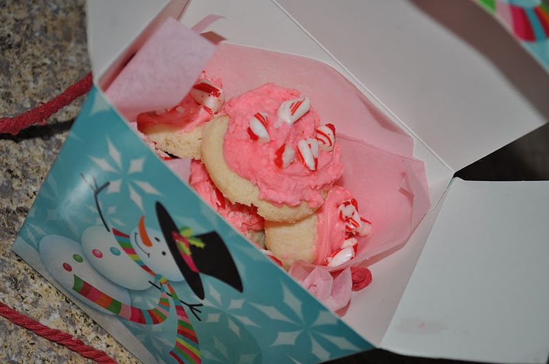 Most all of your craft stores and even in Target’s dollar section you can find seasonal “Chinese take-out” boxes.  Line with tissue paper and fill with your favorite cookie.  Not only is it an easy gift, it is so cute!