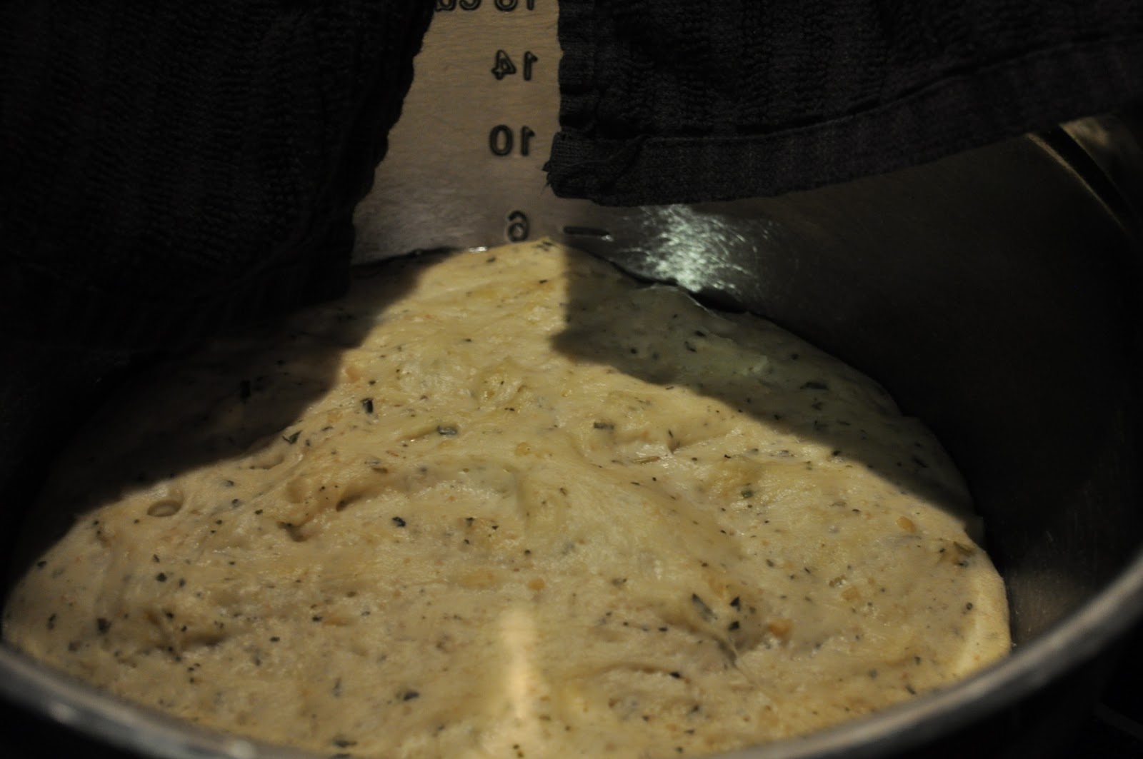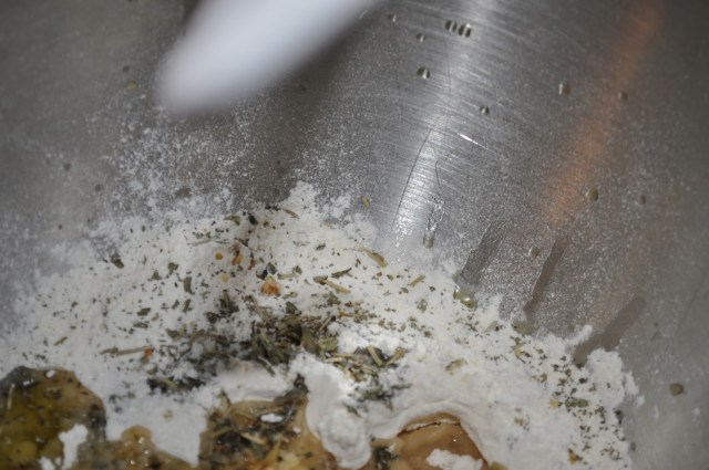 • 1 cup warm waterMethod:Combine the flour, sugar, garlic, basil, rosemary, tarragon, olive oil, vegetable oil, and salt in a mixing bowl; mix with a dough hook.
