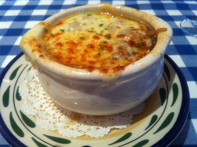 Audley and I both chose to start of with baked French onion soup. It was so rich and delicious and totally satisfying. I considered a second bowl, but remembered that I has already ordered a main course!