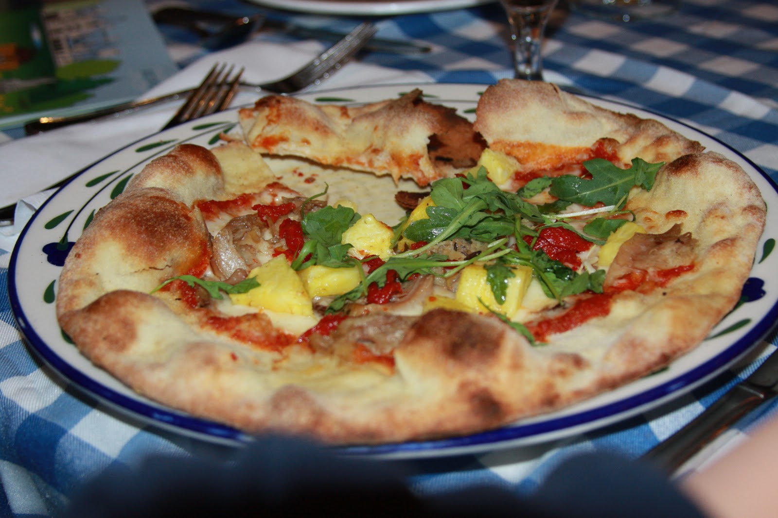 And the pizza of the day topped with mushrooms, pepperoni, pineapple and fresh arugula lettuce was very flavorful indeed.