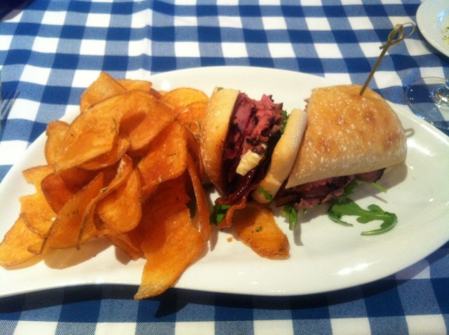 For my main course I chose a beef tenderloin tip sandwich with sweet onion jam, bacon and arugala lettuce. It was served up with kettle cooked truffled chips. I am not quite sure that I can put into words how delicious these chips were.