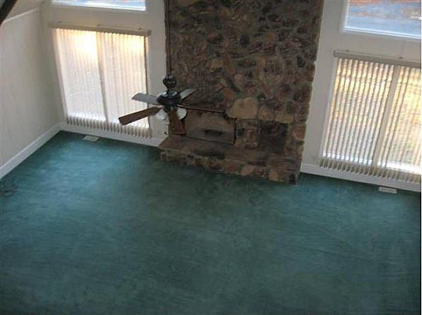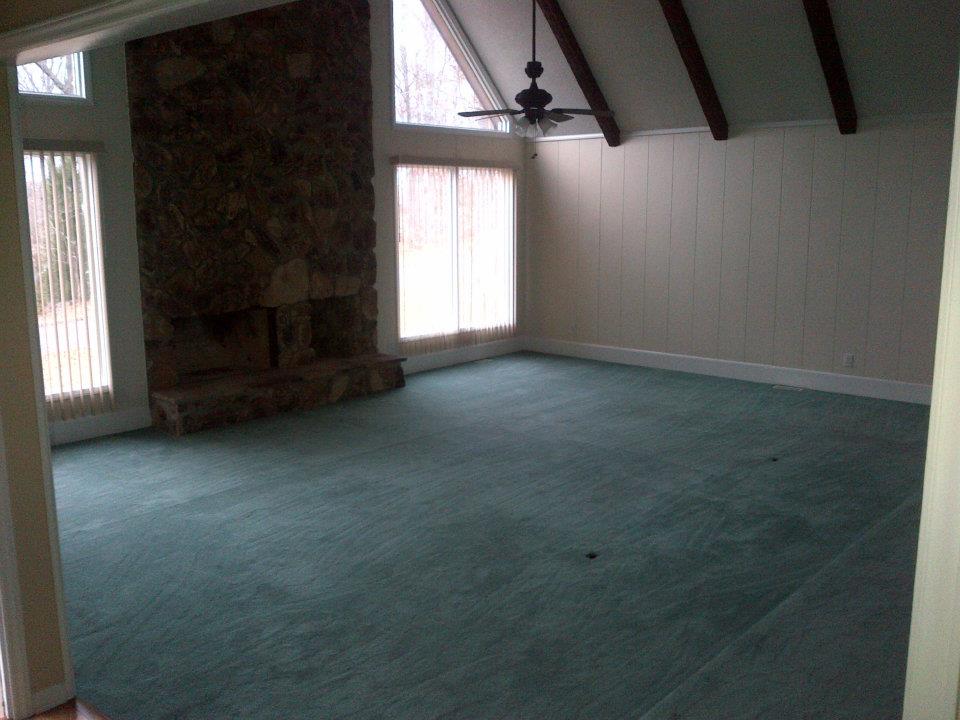 | Another view of the great room; the carpet is not ripped, but has electrical outlets installed! No cords spread throughout the room! |