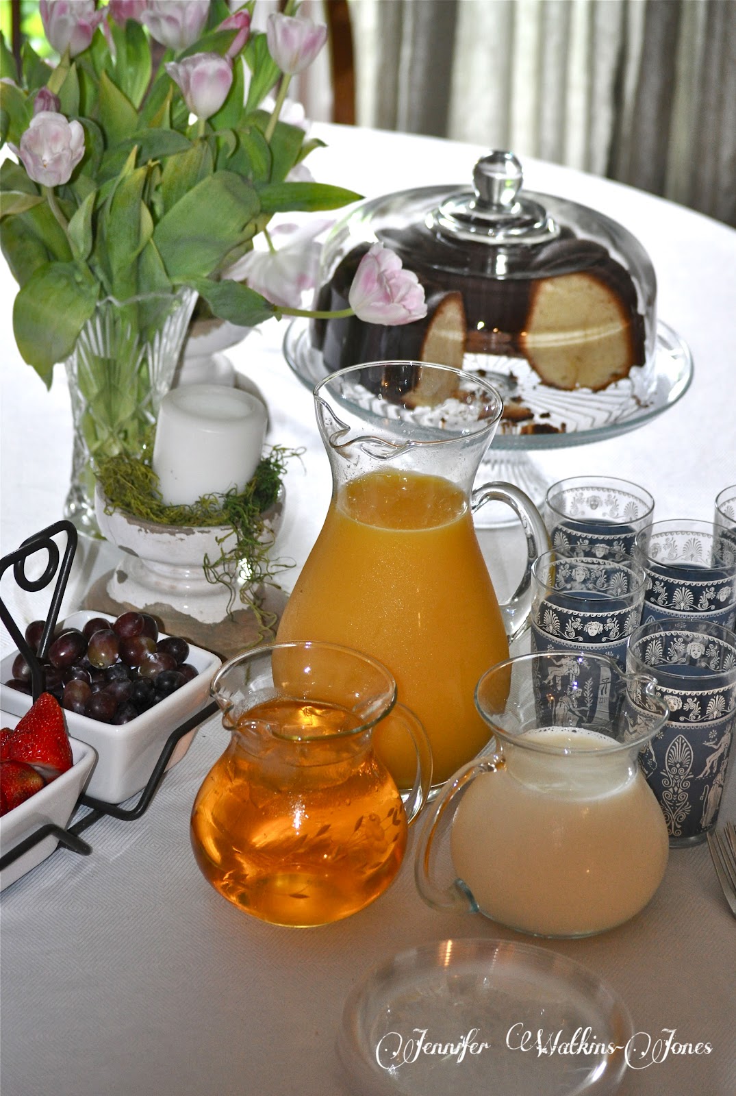 I set a simple little buffet complete with milk and juice so that everyone could casually eat as they got up.