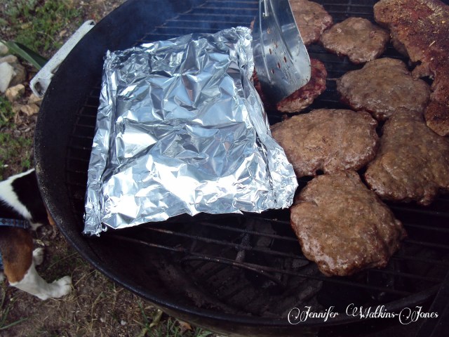 For the grill, heat it to 450, or if using charcoal, heat until the charcoal has turned gray. You don’t want high flames to char the fish. Seal up the aluminum foil, creating a packet and lay on the grill. Cover the grill. Carefully turn it over once about 10 minutes into cooking. After about 20 minutes, carefully check for doneness & cover if needing more time.