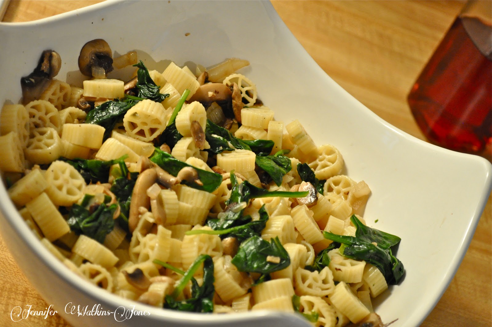 One of my favorite on the go meals is a hearty pasta salad. I know the idea of a pasta salad doesn’t sound so healthy, but this one is just delish! Made with fresh spinach & mushrooms it could stand alone as a meal, but grill chicken breast to serve as an accompaniment, and you have a complete meal-on-the-go!