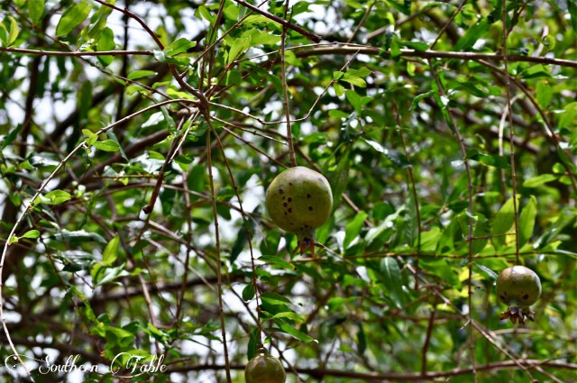 | Pomegranates growing. Oh, how I wished they were ripe! |