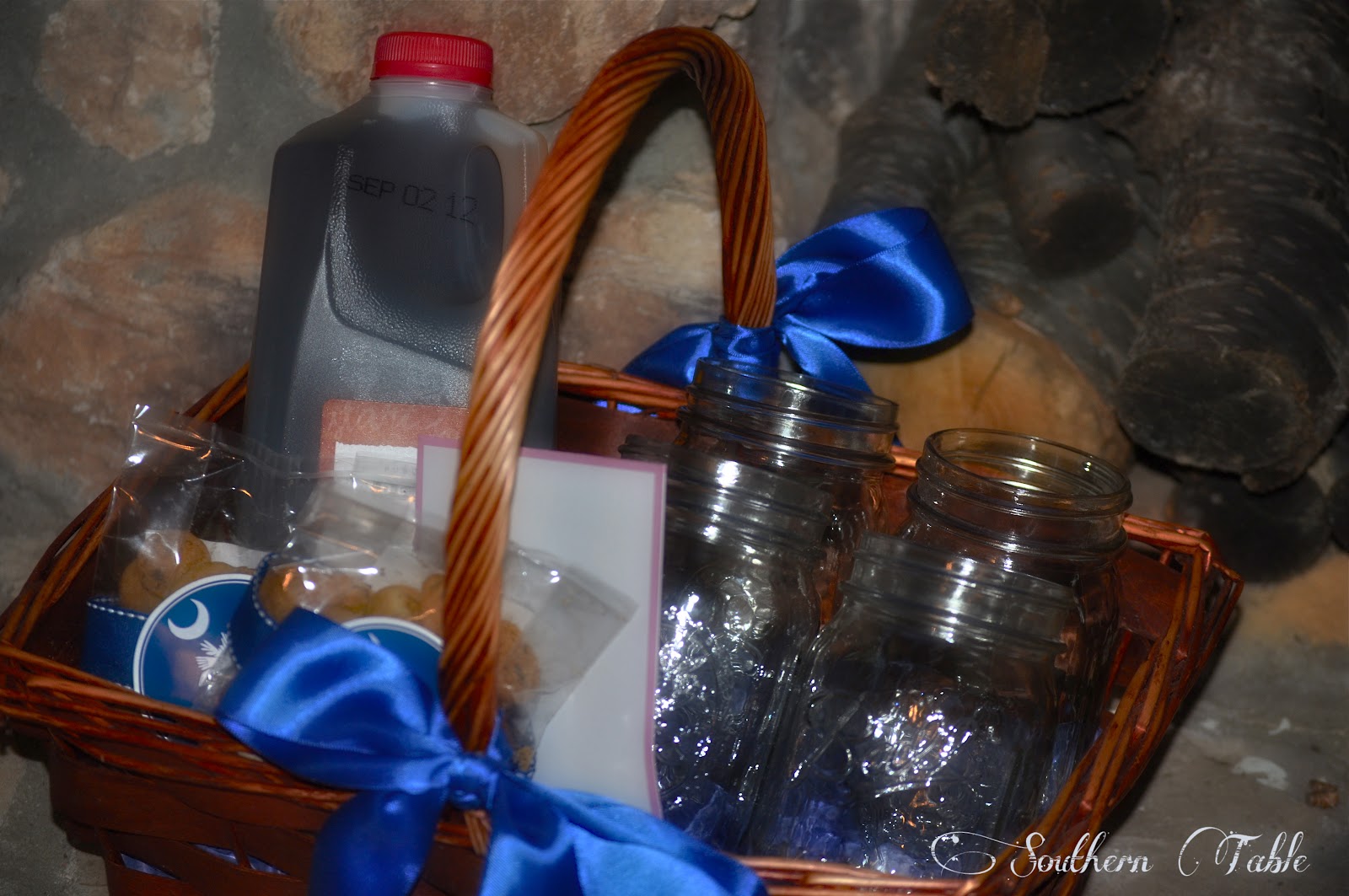 When I carried supper over, I also carried a little welcome basket. Since they have moved to the South from the Philly area, I decided to give them a Southern welcome by gifting Mason jars and sweet tea.