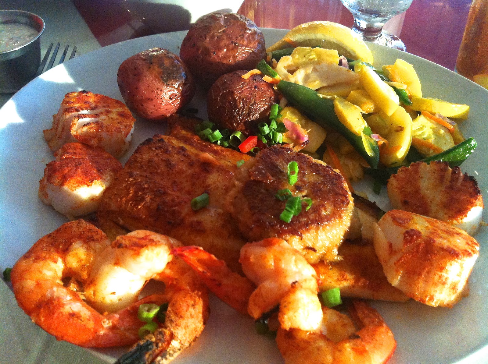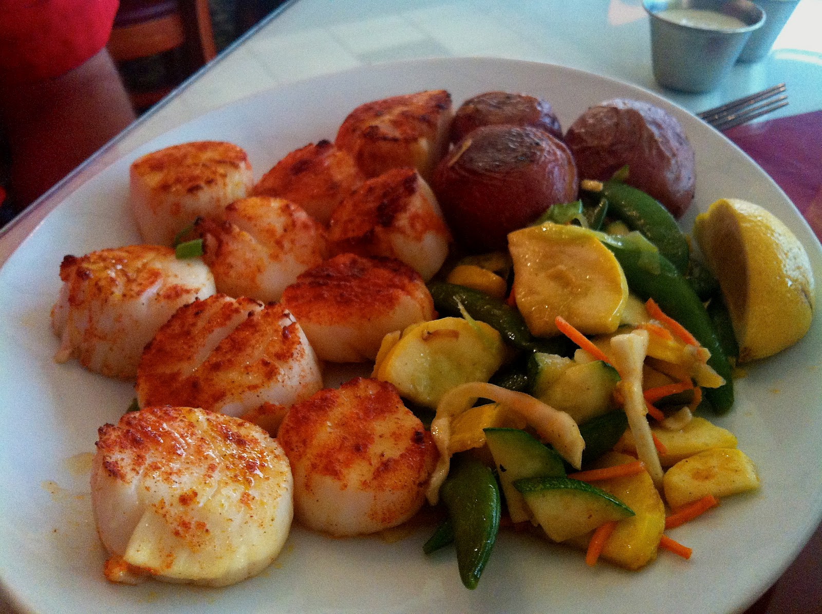 | My own seafood platter of scallops, shrimp and flounder… not floating in butter, just as I ordered it. |
