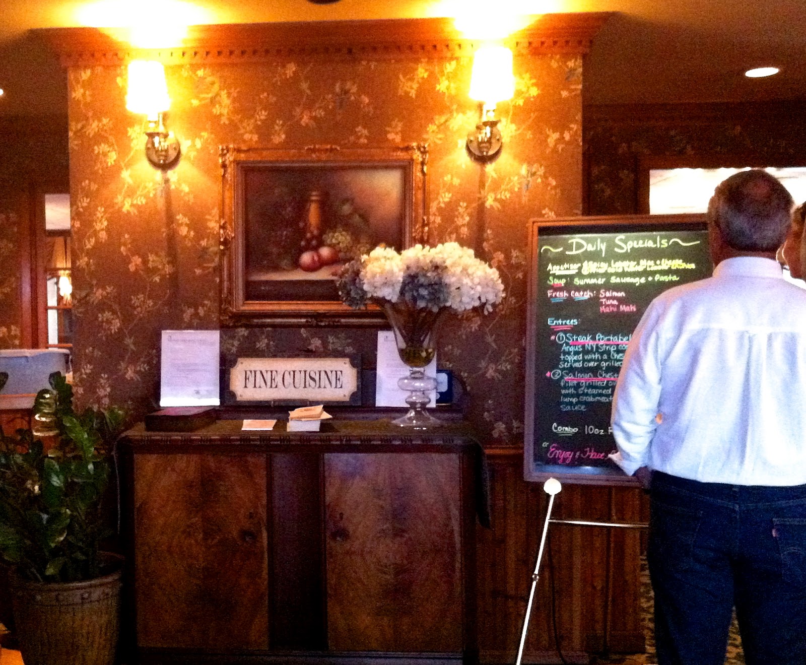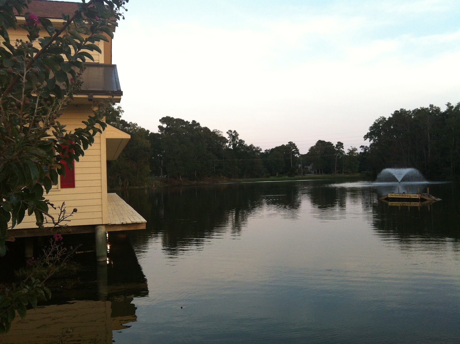 The decor inside the restaurant reminded me of Old Southern charm. A mix of antiques (like a primitive buffet where tea & water was served from) with elegantly set tables, all with a view of the water and it’s natural habitat of turtles, alligators and snakes.