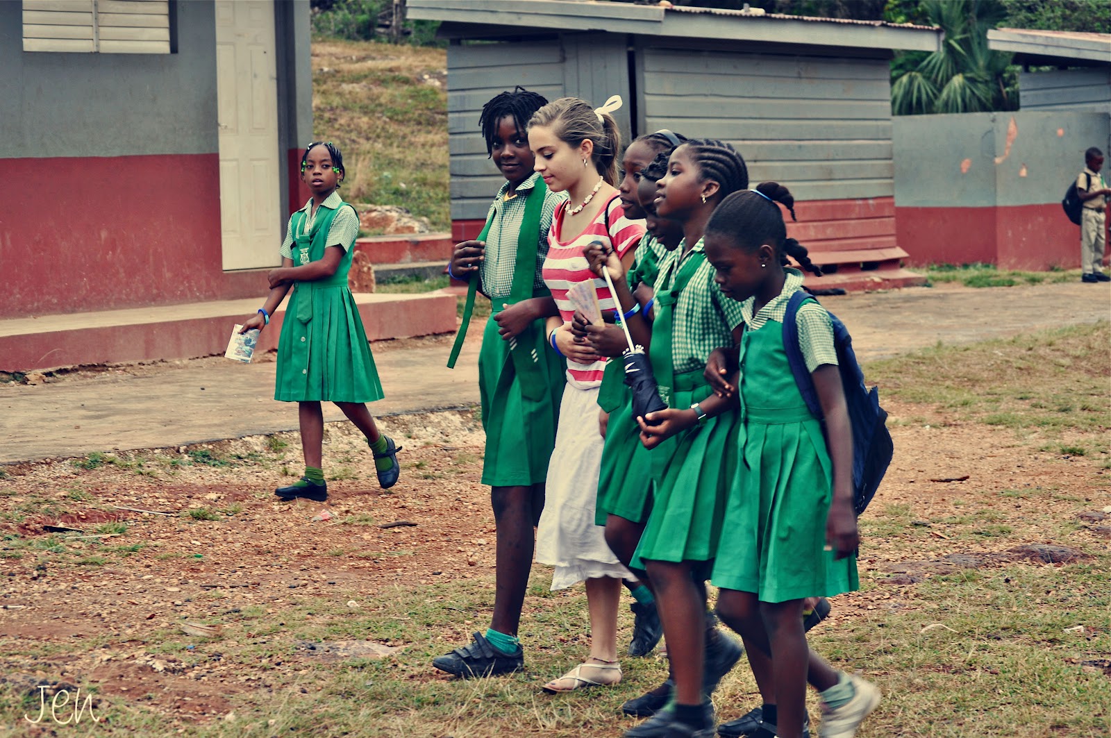 Madeline hanging out with school children in Jamaica this past summer.