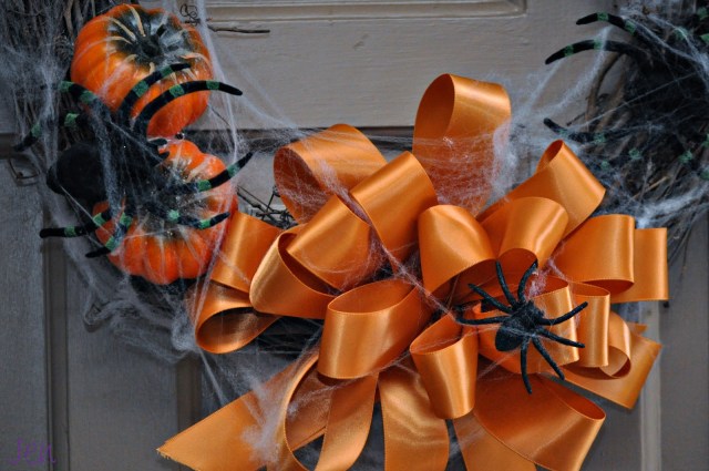 I saw a “spooky” spider wreath in a magazine several years ago, tried to recreate it once only to have the weather make a mess of it all, so I thought I would give it a whirl again this year.
