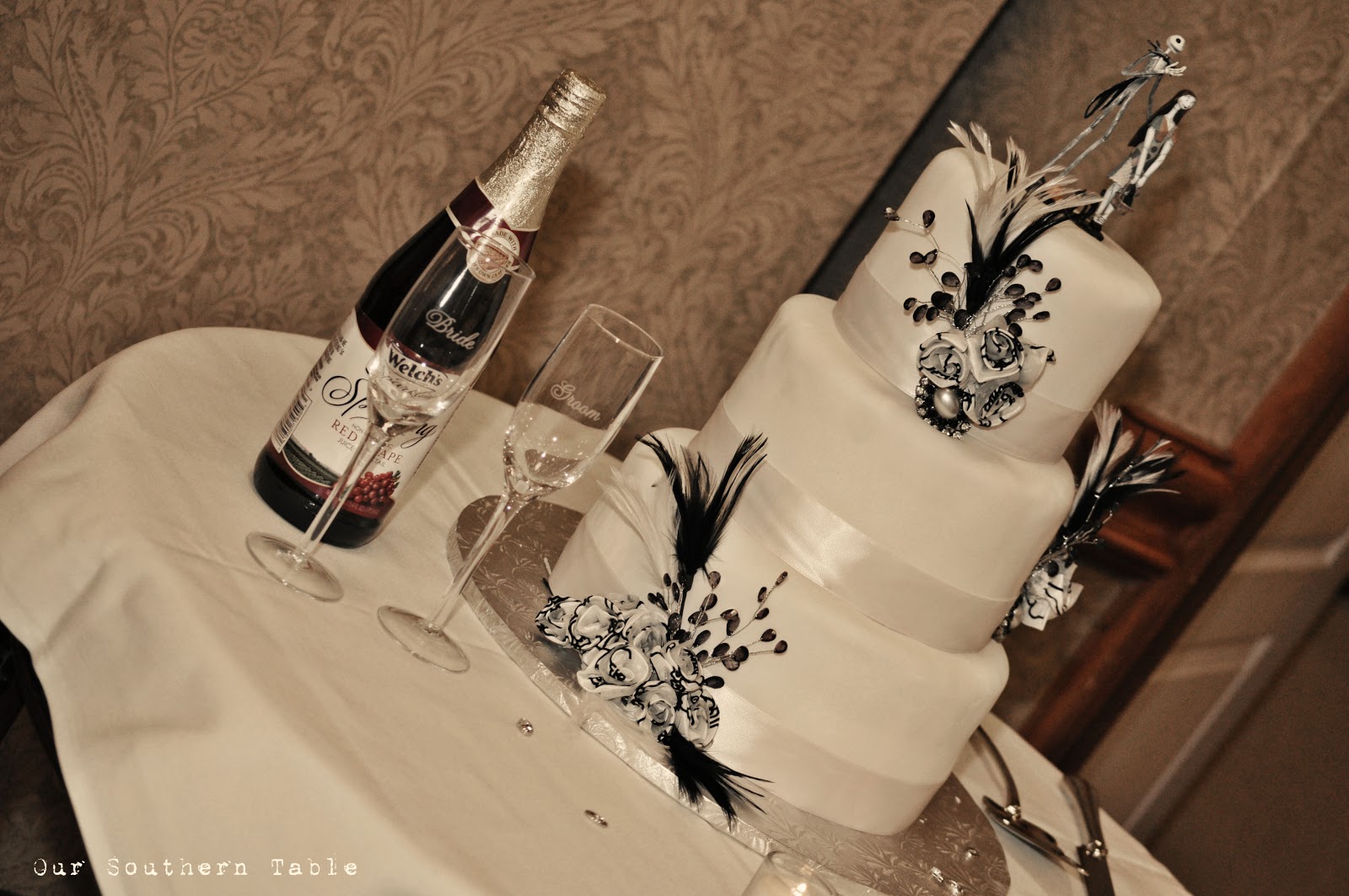 This particular wedding reception was to be prepared for seventy people. After talking with the bride and her mother, and looked at their budget we settled on a menu and decorations that fit the season, and her cake, a Nightmare Before Christmas themed cake.