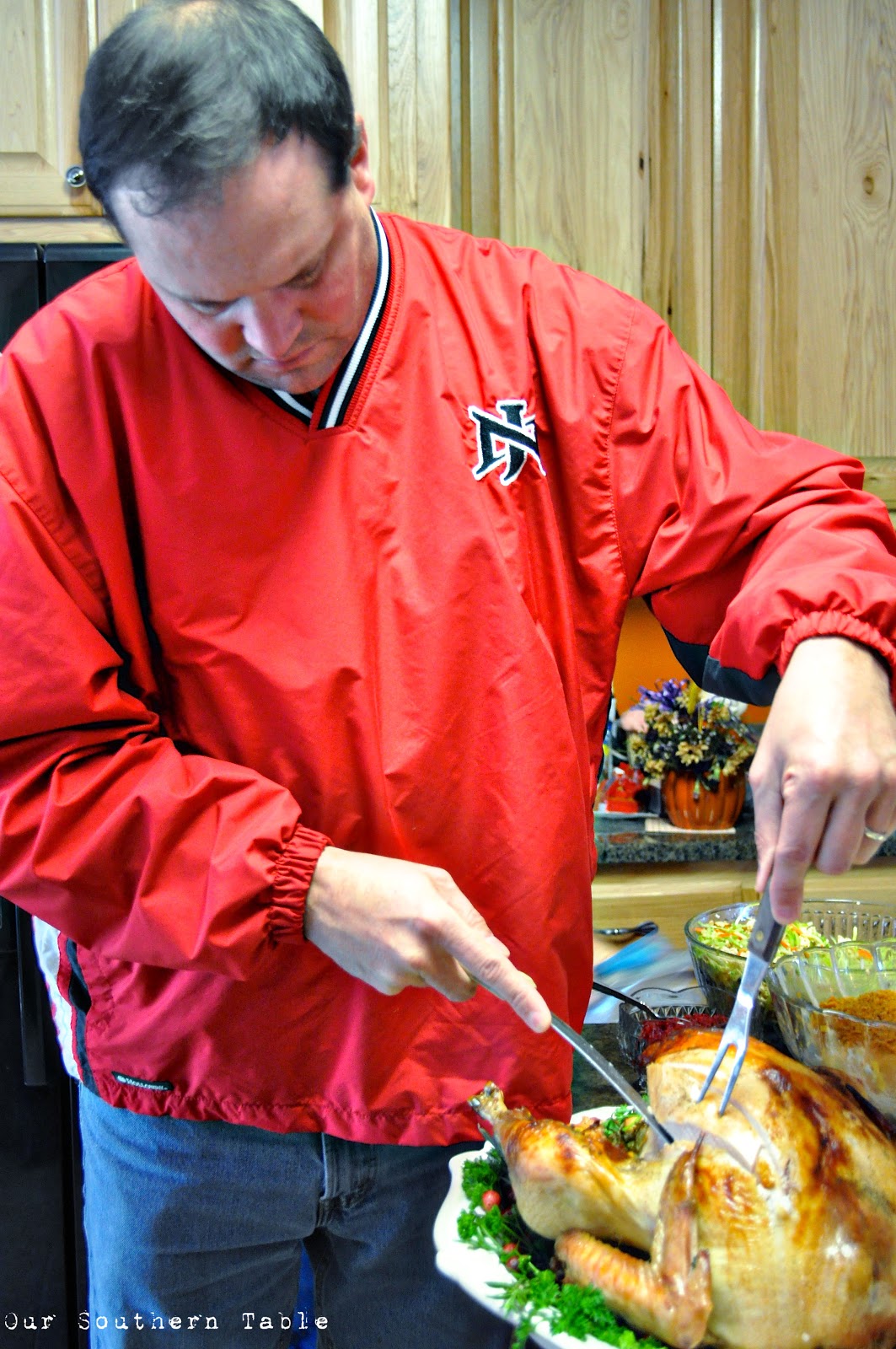 I also love to dress the turkey up and bring him to the table as the centerpiece of Thanksgiving dinner.