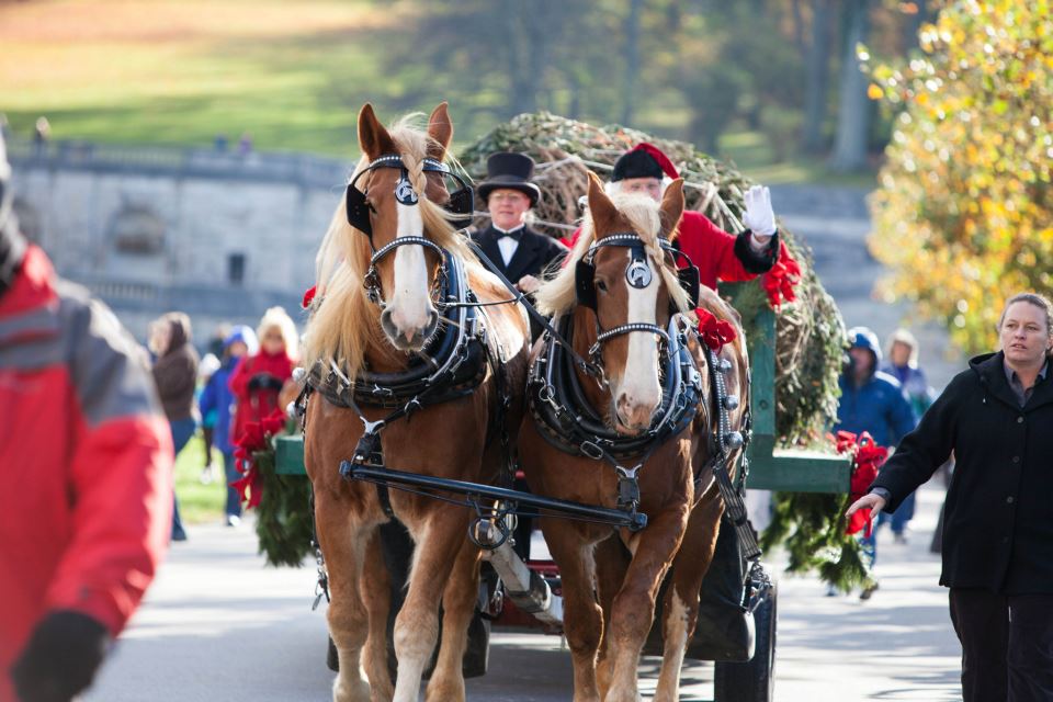 A couple of weeks ago I took a break from cleaning house and playing taxi driver (leaving Audley to handle things for a day) and drove up to the Biltmore House as they were bringing in the grand 35 ft Christmas tree to the banquet hall.