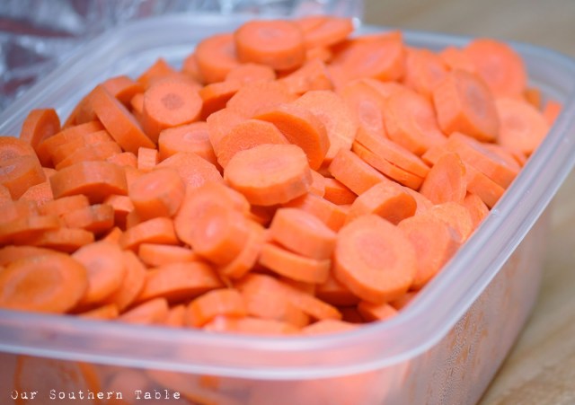 **Peeled and chopped 12 pounds of carrots, diced 6 pounds of celery only to have that man-of-mine, fresh off his flight home walk through the door and ask “Don’t you have a blade with that fancy food processor you own that will do all of that to save time?”