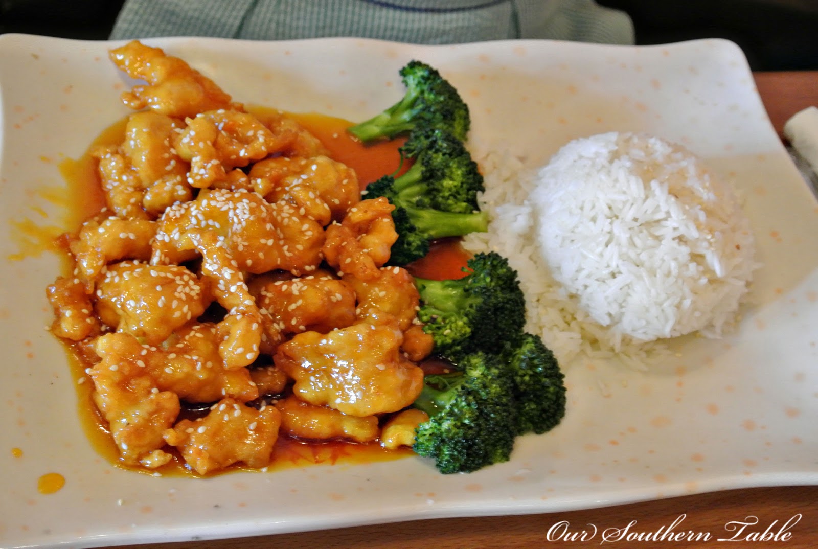 She and MacKenzie both enjoyed sesame chicken for their lunch.