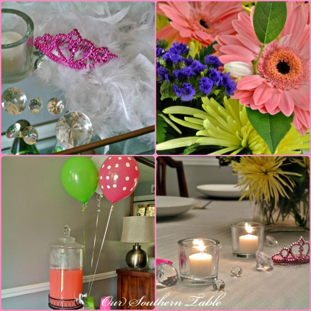 | Fresh flowers, tiaras, faux diamonds, candlelight & balloons all added a little celebration flair to the festivities. |