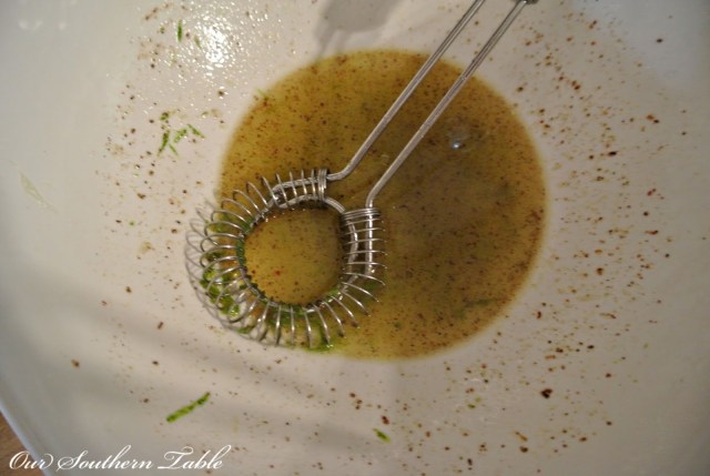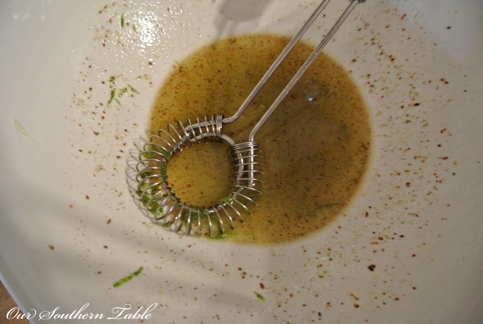 Whisk together the lime zest and juice, pepper, and olive oil in a large mixing bowl.