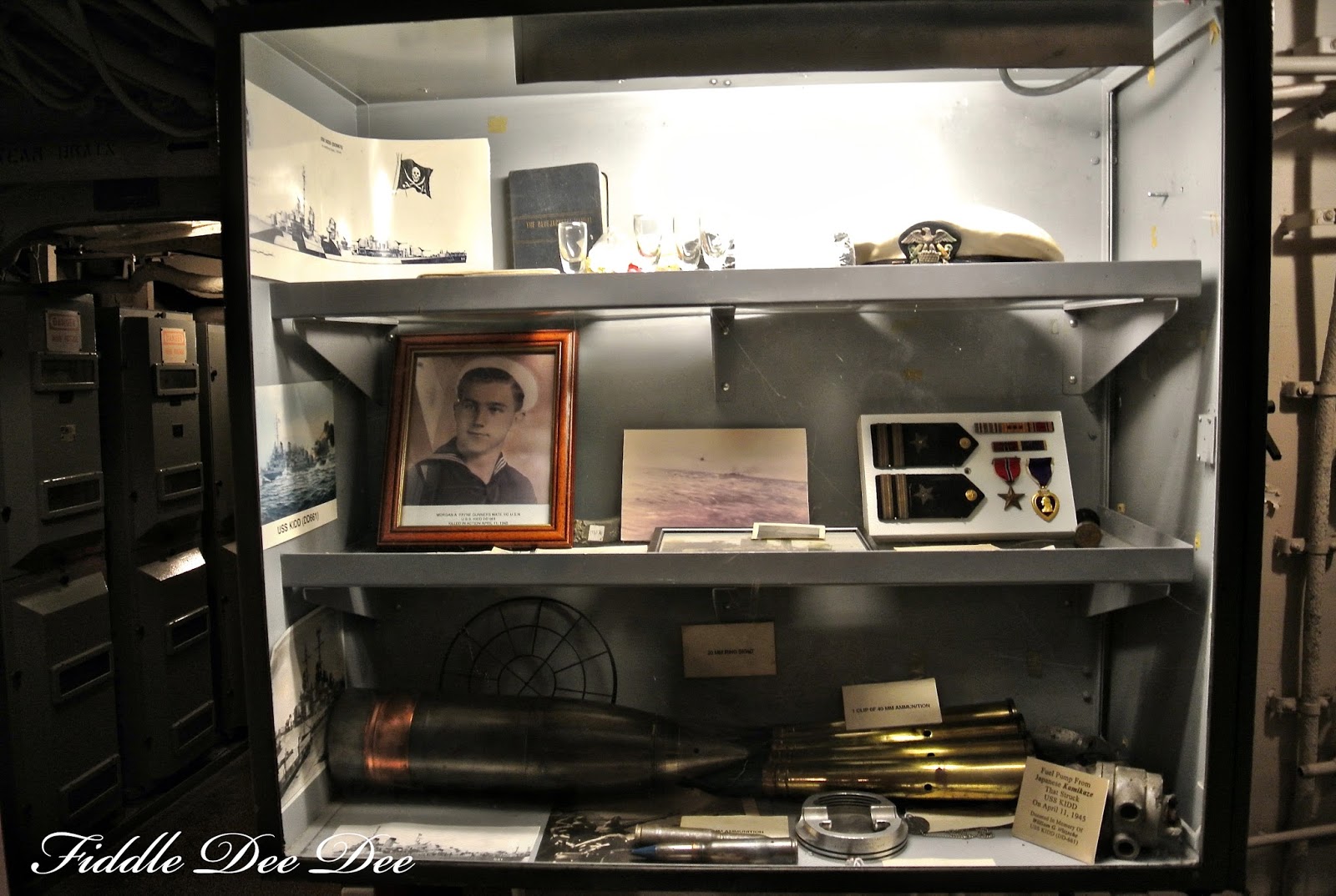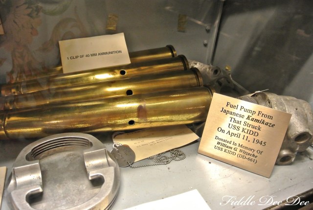 Throughout the ship are memorial areas that tell the story of the USS Kidd and her sailors. There are mementos from hitting port as well as military mementos shared by the families of the sailors.