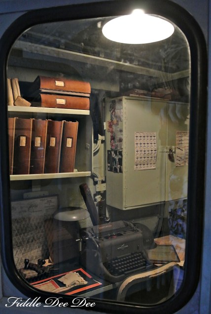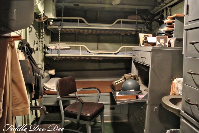 Cramped officer’s quarters on board the USS Kidd. Not only did the officers live here, they had to use this area as a work space! Three men lived and worked in this one tiny area!