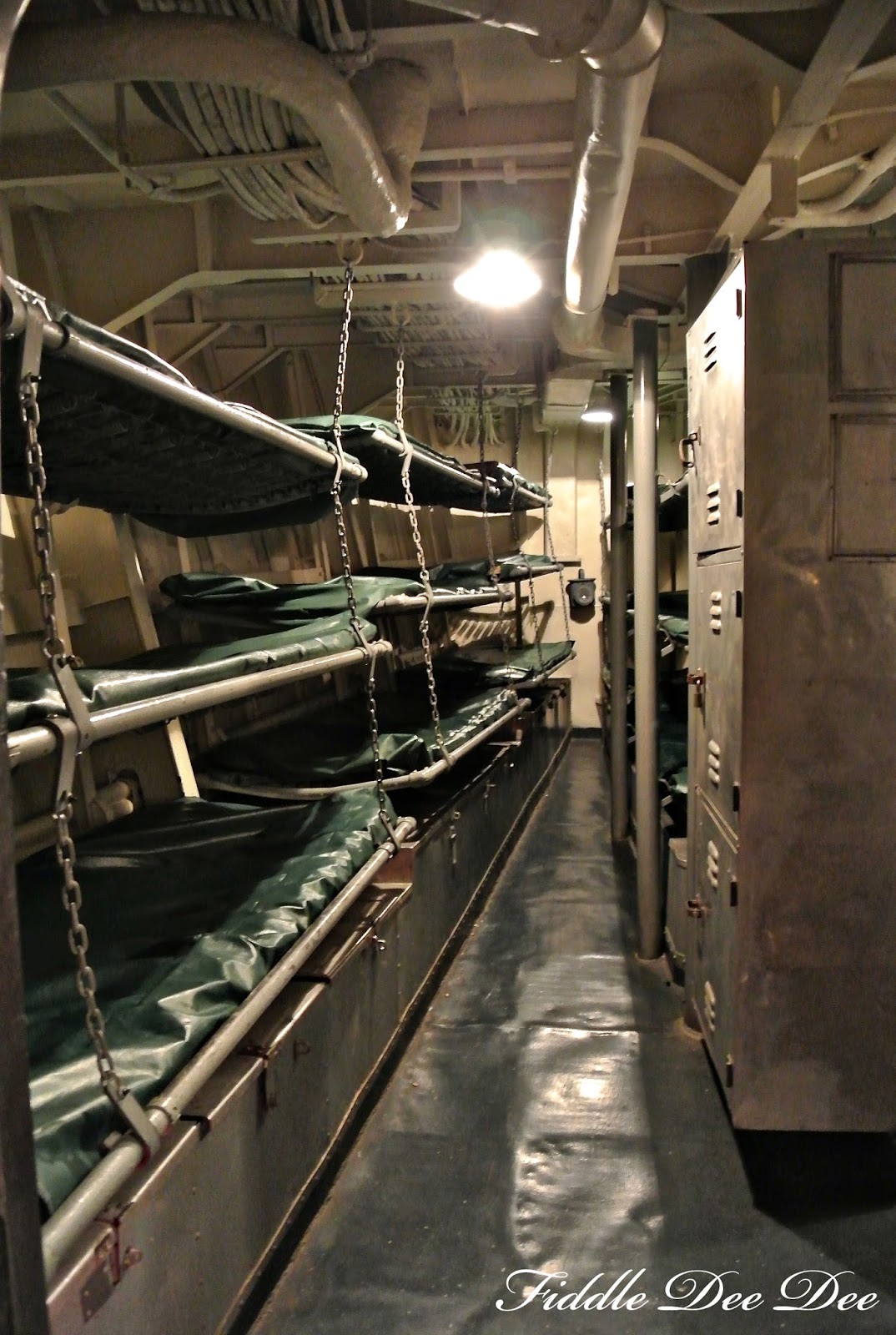 Nothing like seeing the stacked up tight space that the enlisted men lived in to have even greater appreciation for the sacrifice that they made! The other bunk area on the ship had the tables (picnic style) where the men actually were served their meals in shifts!