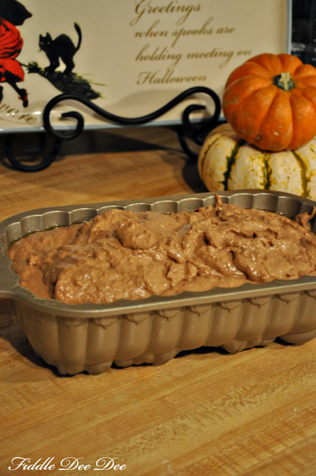 Simple to assemble: Thoroughly mix all ingredients together in a large bowl (I use my Kitchen Aid mixer with the paddle attachment) and pour into a bread pan (or muffin pan if your prefer) sprayed with PAM. This makes a very thick batter and does not rise like a typical bread, so fill your pan nearly full.