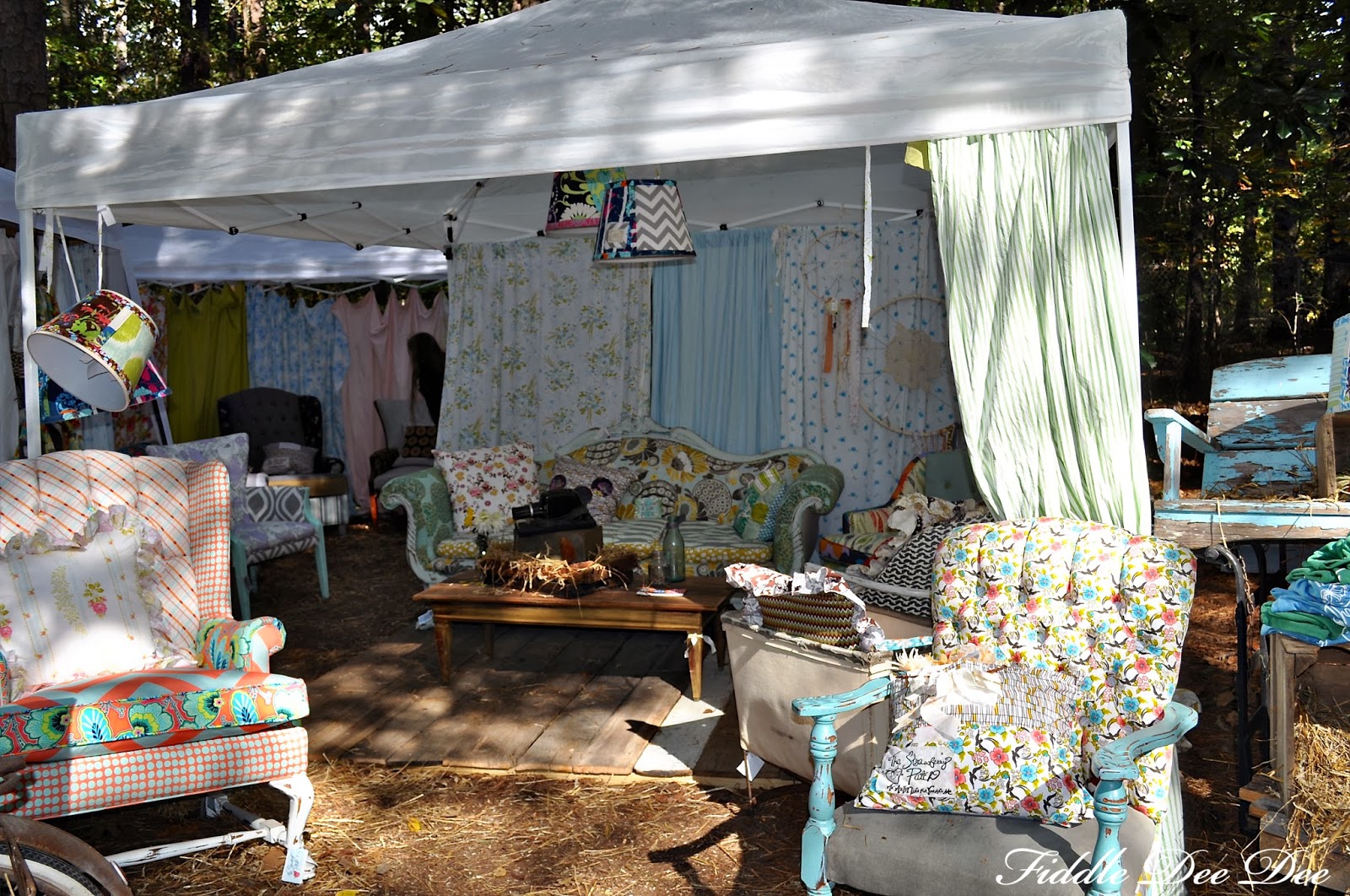 Mismatched recovered furniture seems to be the latest trend in decorating. We saw a lot of this while walking through the vendors. I can’t decide what I think of it, but I think my teenage daughters loved the idea of it!