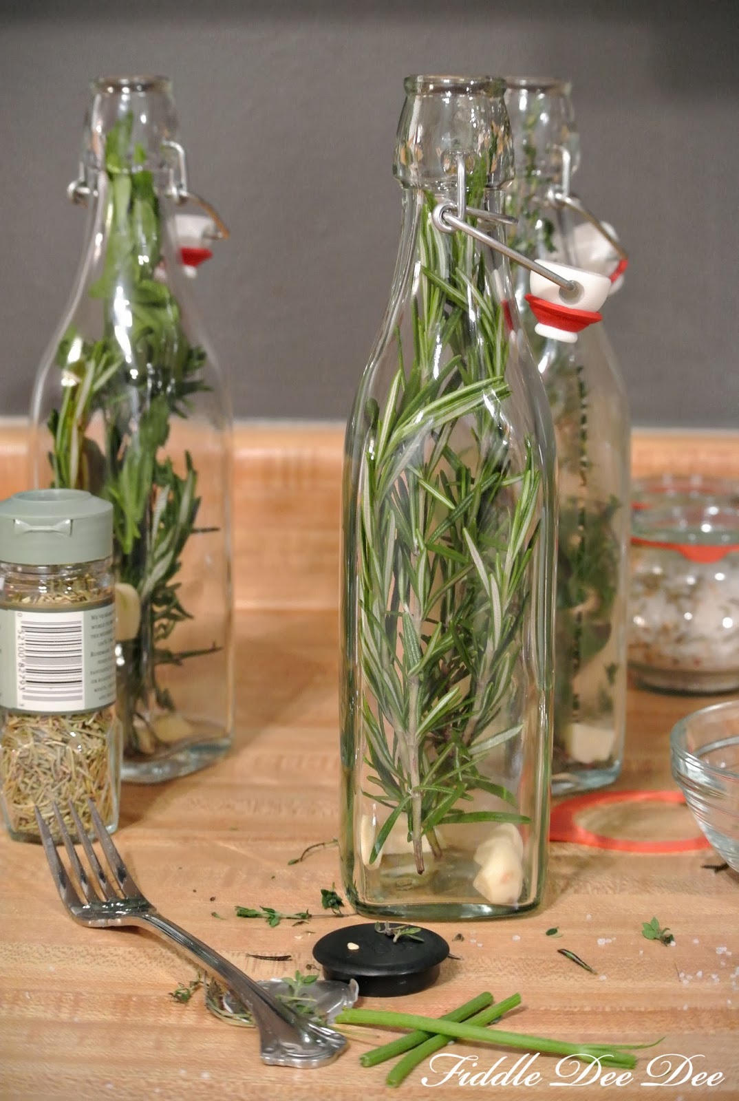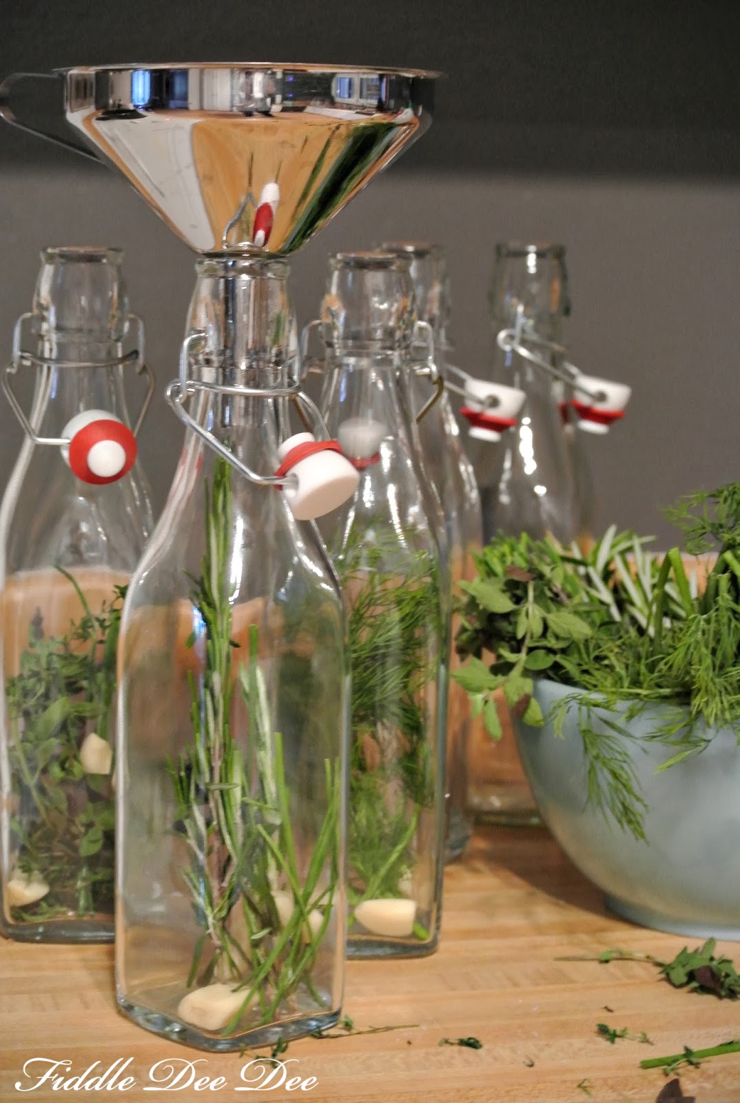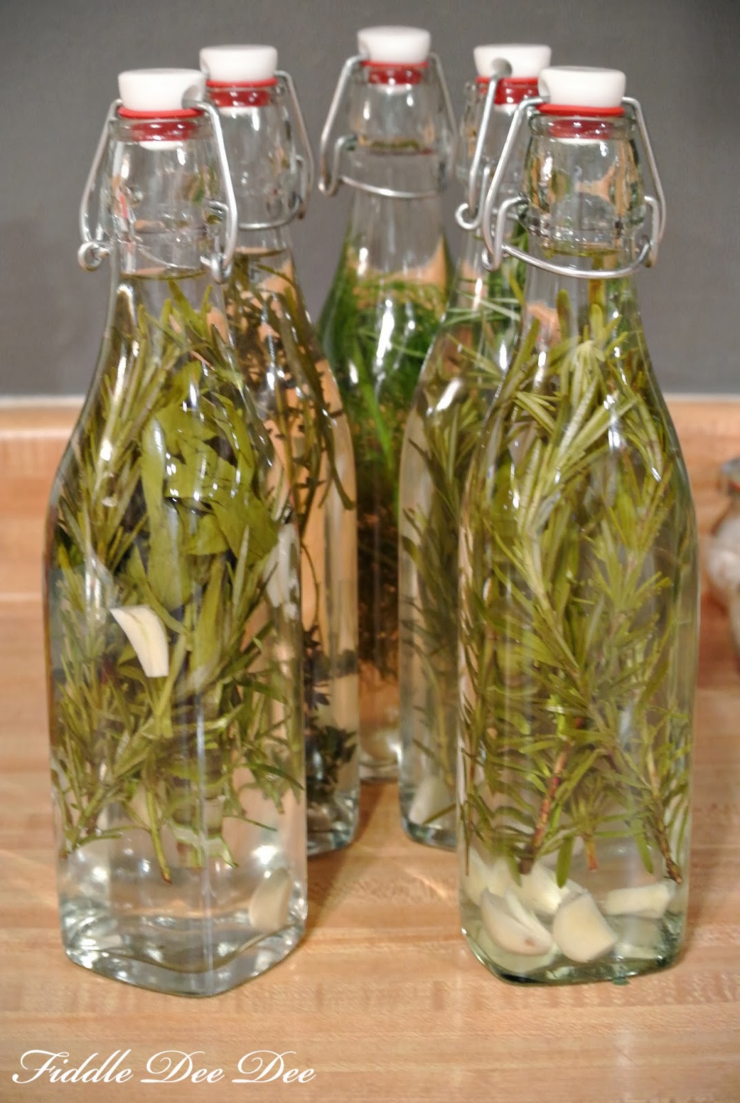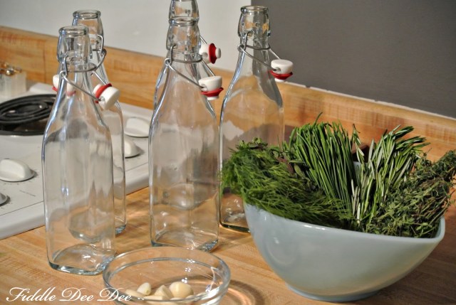All you need is bottles with rubber seals for the mixture, assorted fresh herbs, garlic, dried peppers (if your fortunate enough to find them!), and vinegar.