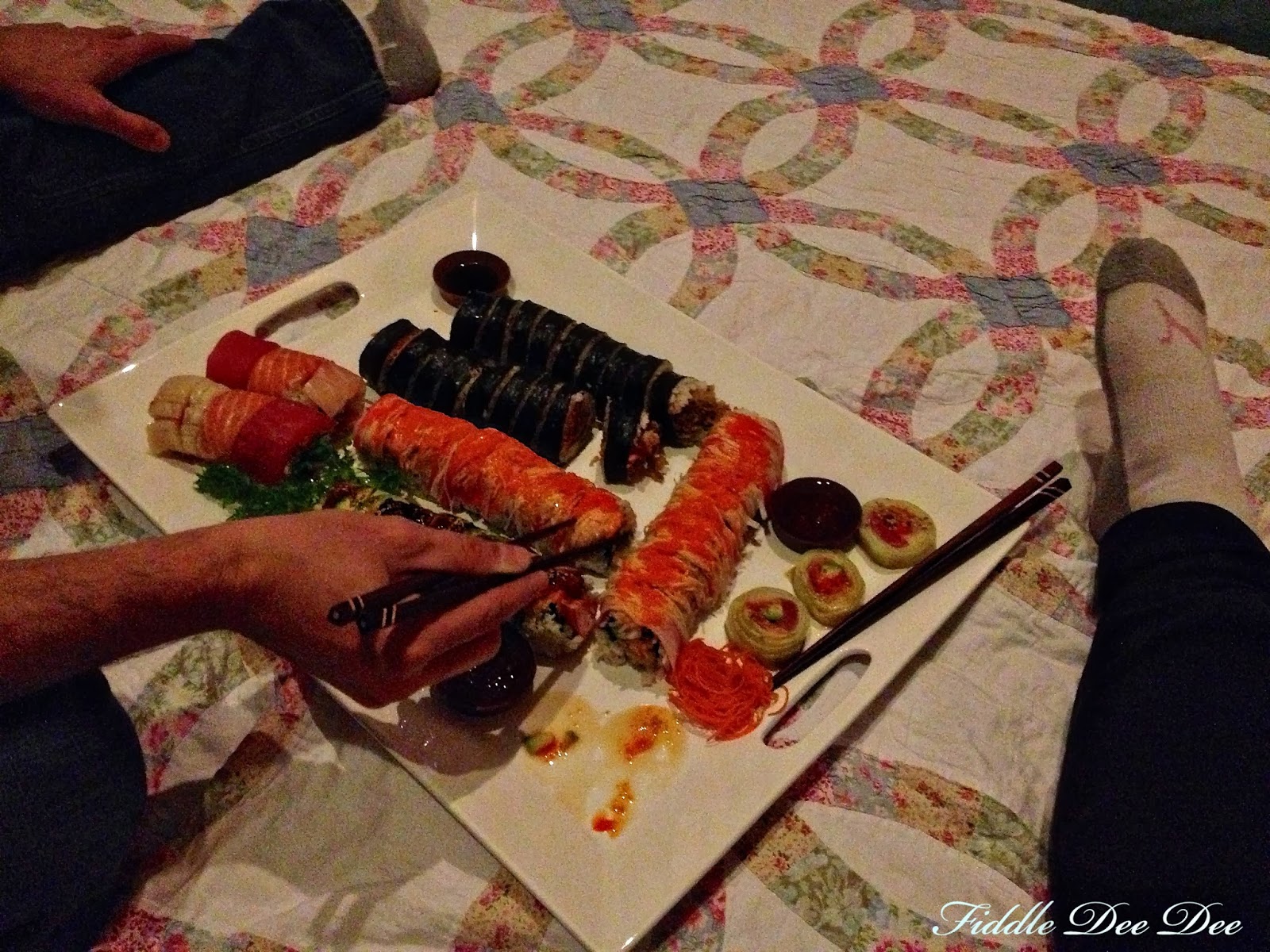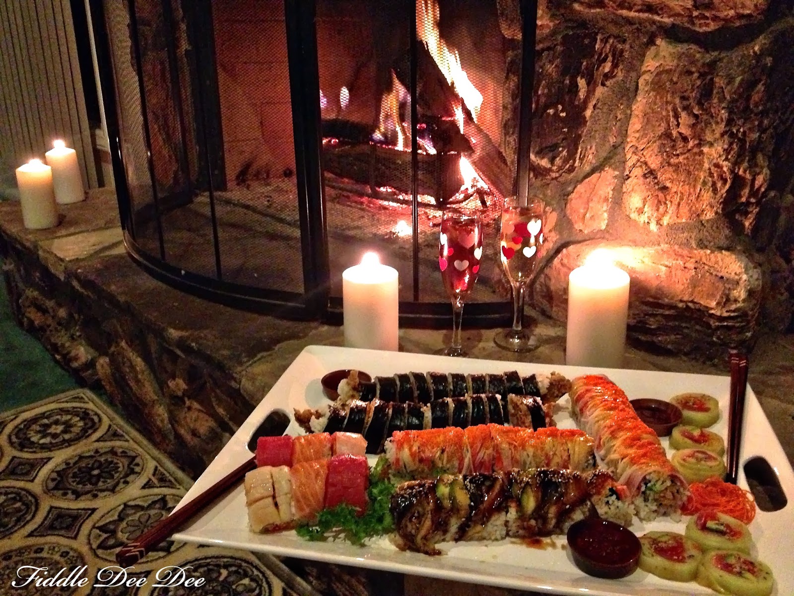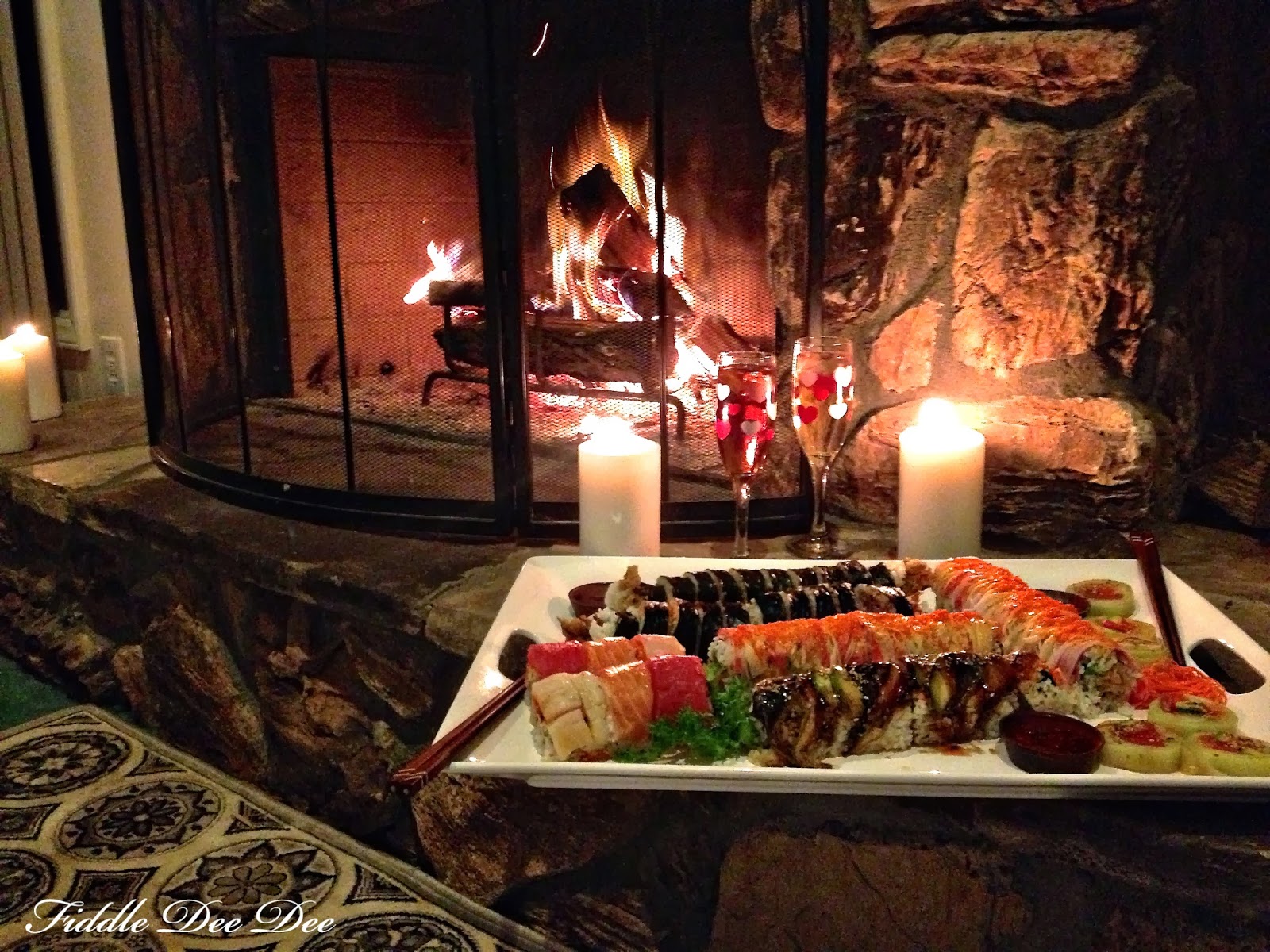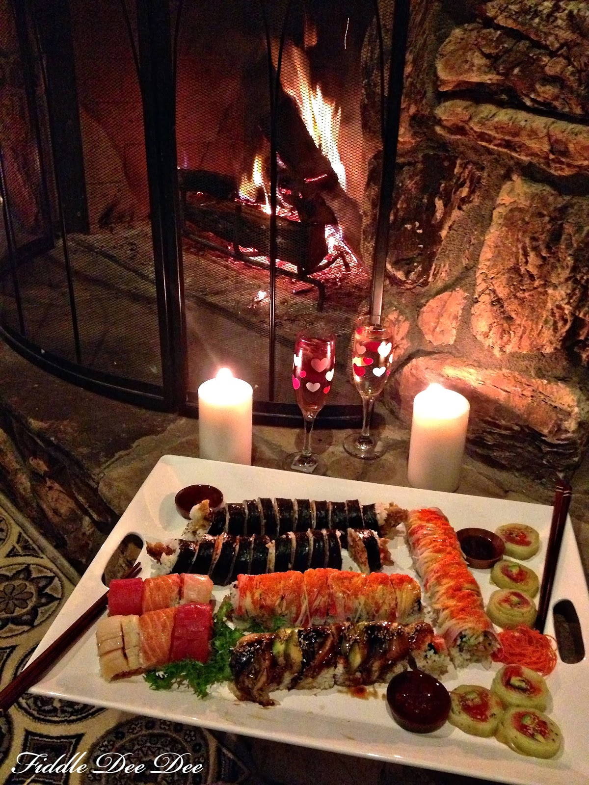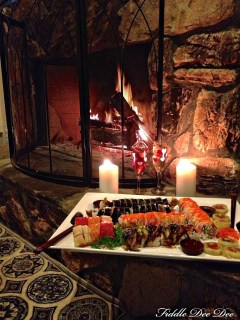 What a fantastic date night! Beautiful fire, tasty sushi and champagne! Gotta love date night!