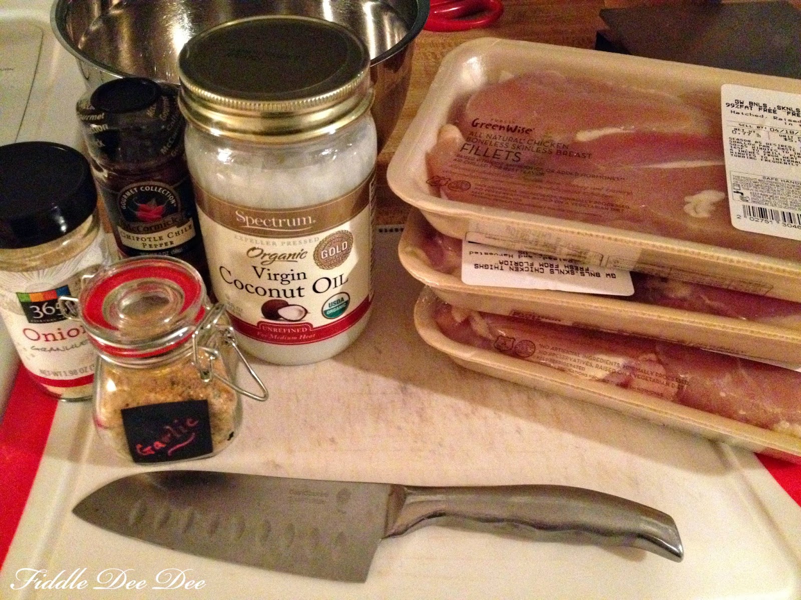 *Removed excess fat from your chicken breast and slice the chicken into thin strips.  Add to a bowl, then toss with the chipotle chili, onion and garlic powders, and black pepper.