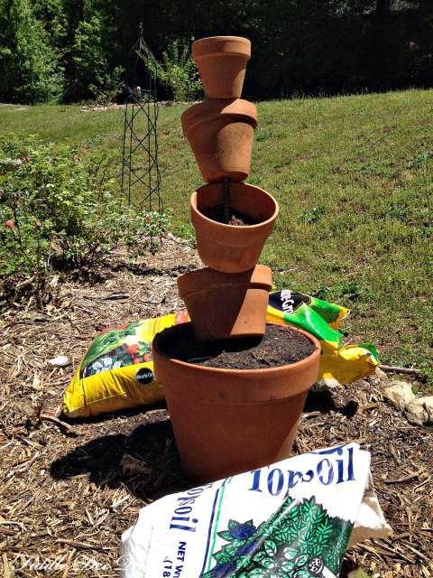 2. You will need help for part of this, but you want to stack the pots (without dirt in them) to get an idea of how tall your planter tower will be.  We measured ours to be right at 3 feet and was pretty spot on.  Cut your rebar to the correct height.