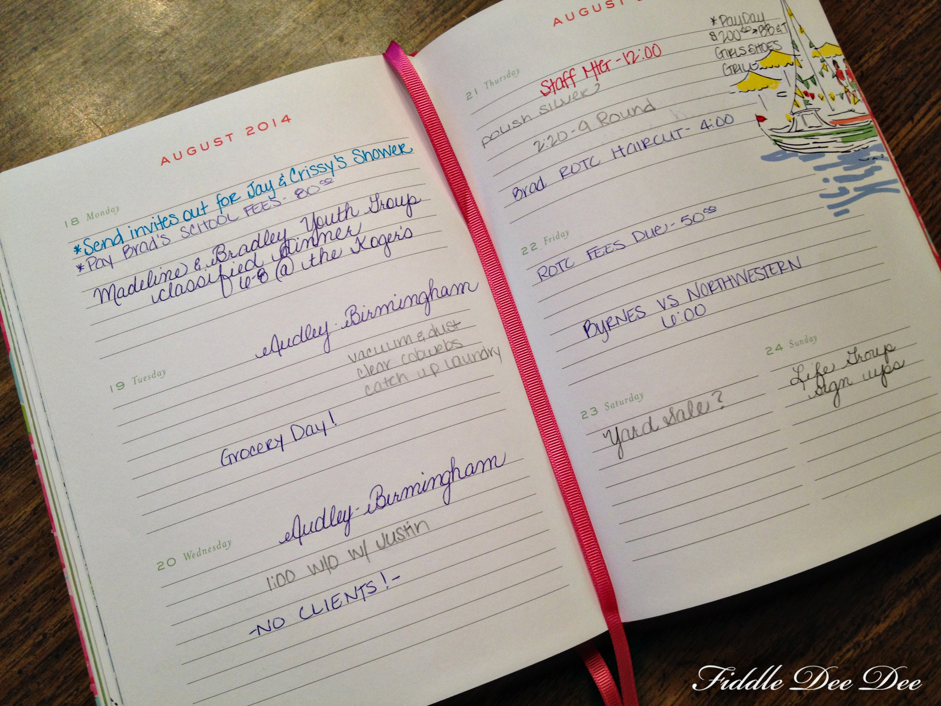 I have a calendar on my phone, in my office and a huge day planner with me at all times. I get up at 4:00AM two mornings a week and 6:00 AM the other workdays. I have clients as early as 5:00 AM and as late as 7:00 PM and most nights I’m up until 11 or 12.