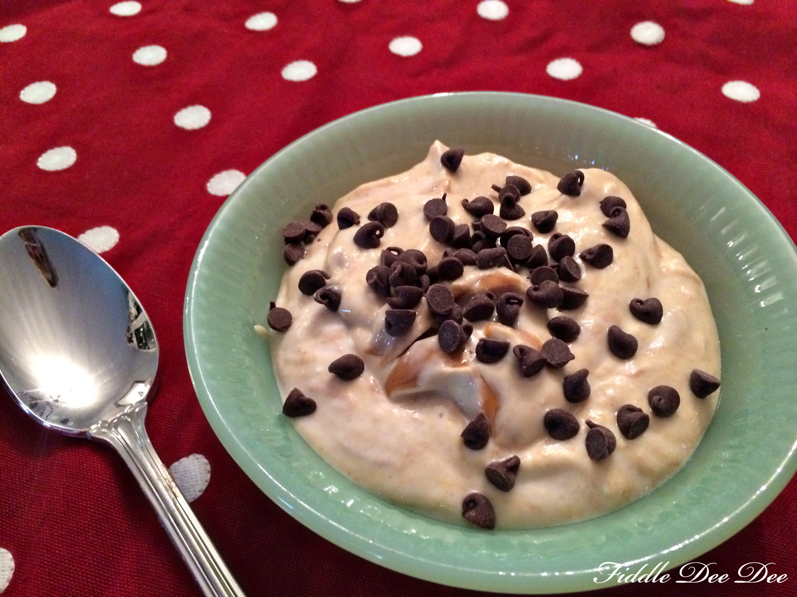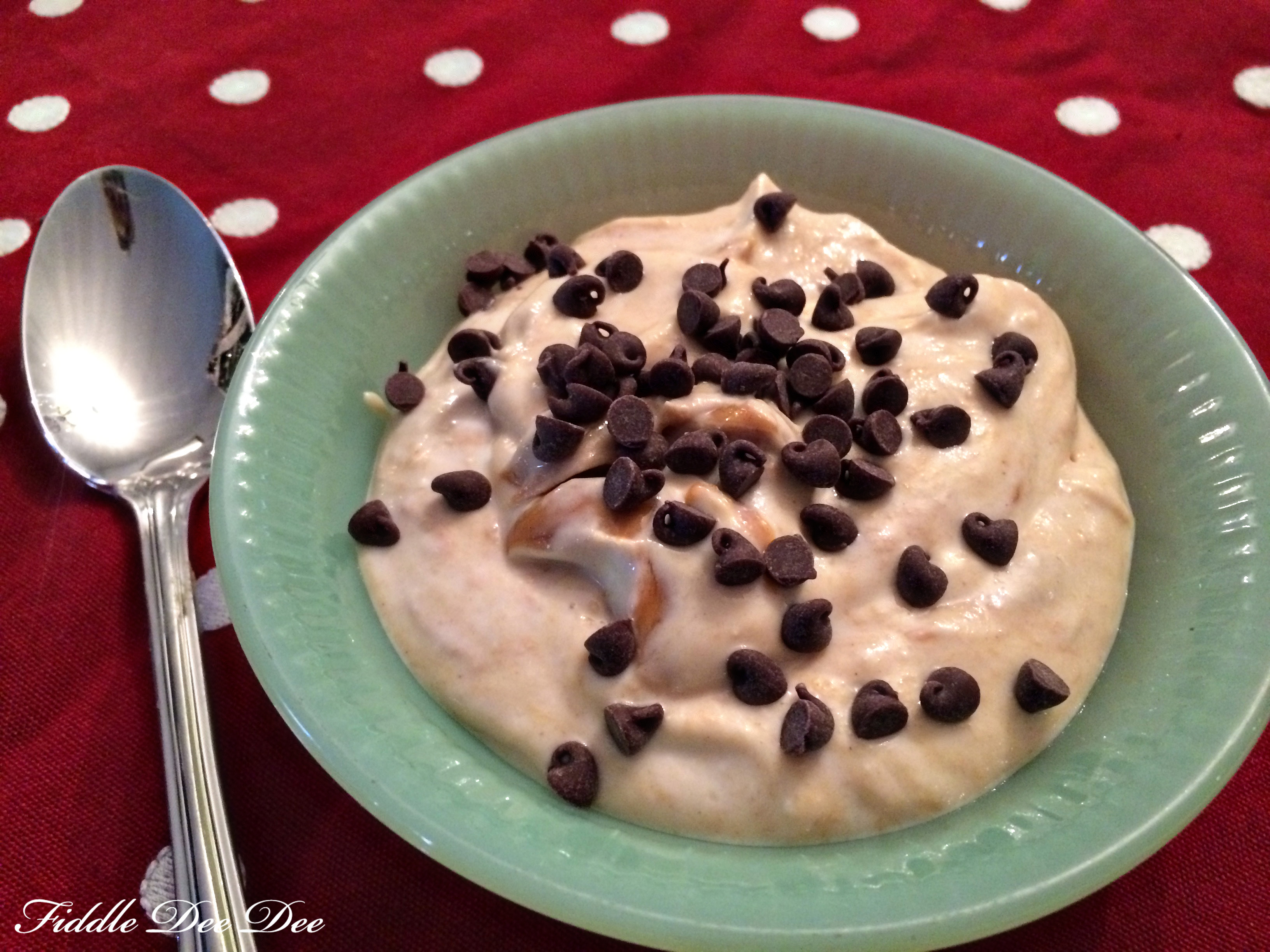 Stir together the Greek yogurt, peanut butter and honey; Top with the mini chocolate chips and you’re all set!