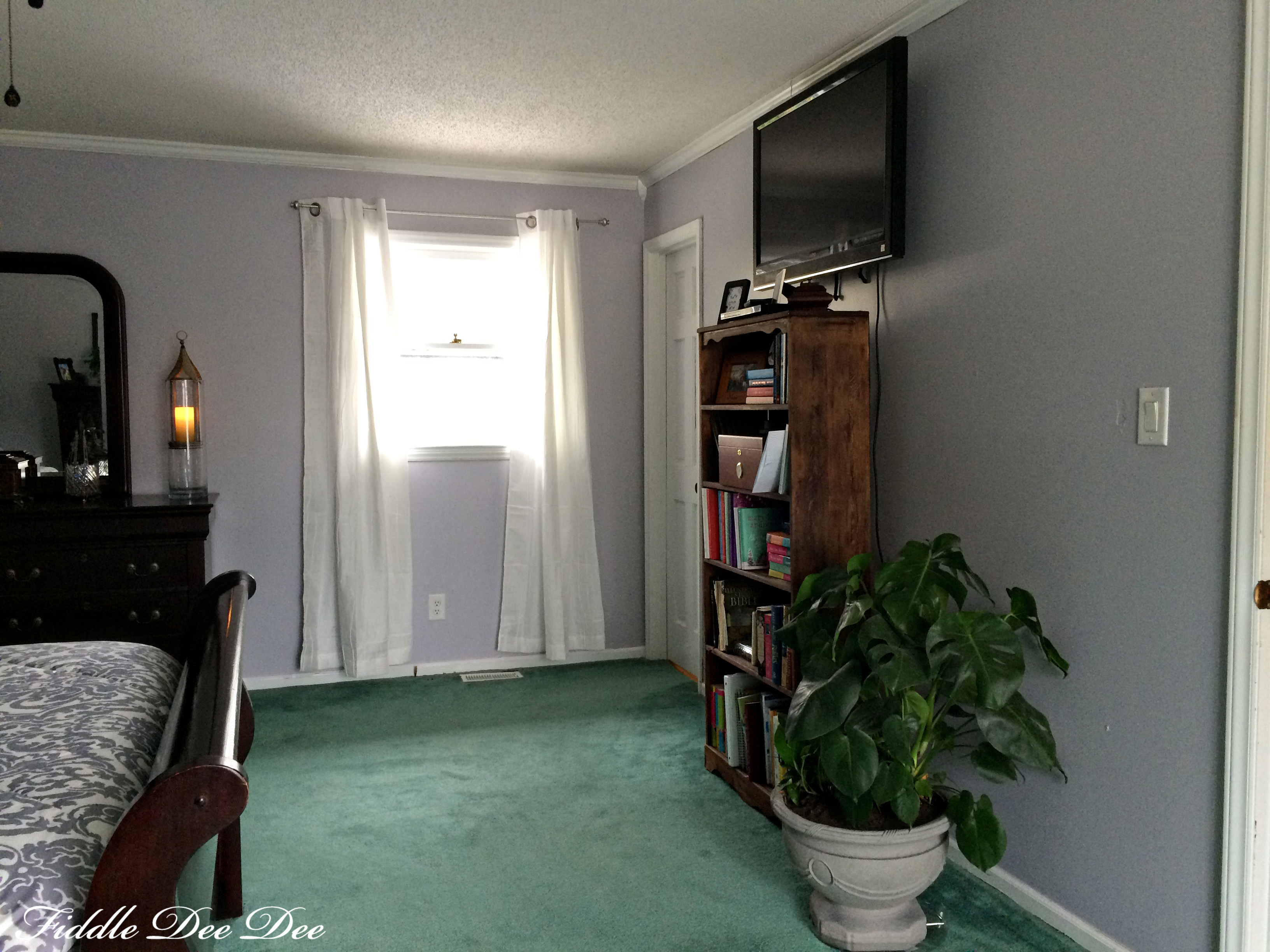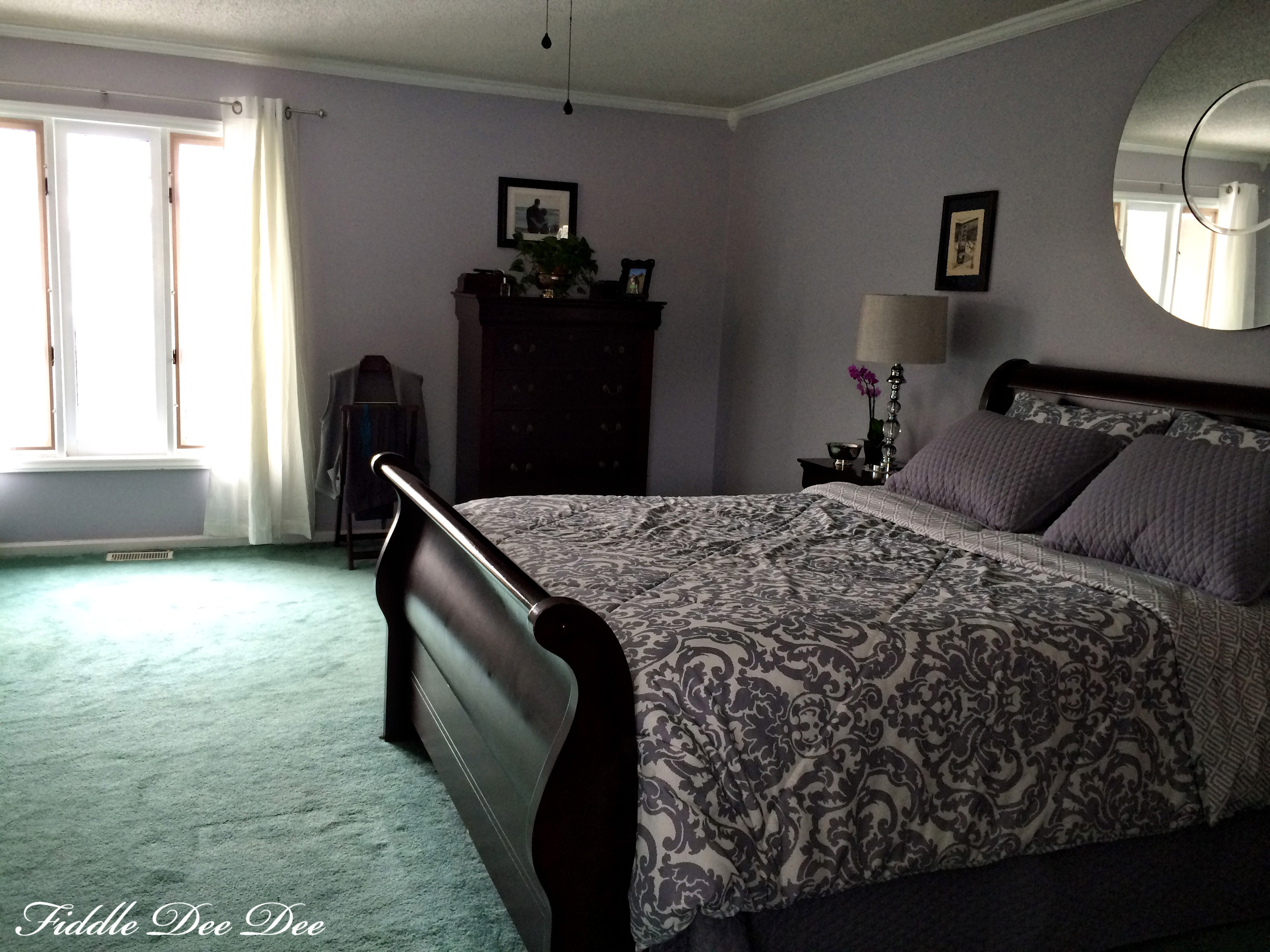 Keeping our existing furniture (that we did not want to paint), working with a strange colored carpet (that I actually like), & having a smallish budget, here is our new master bedroom.