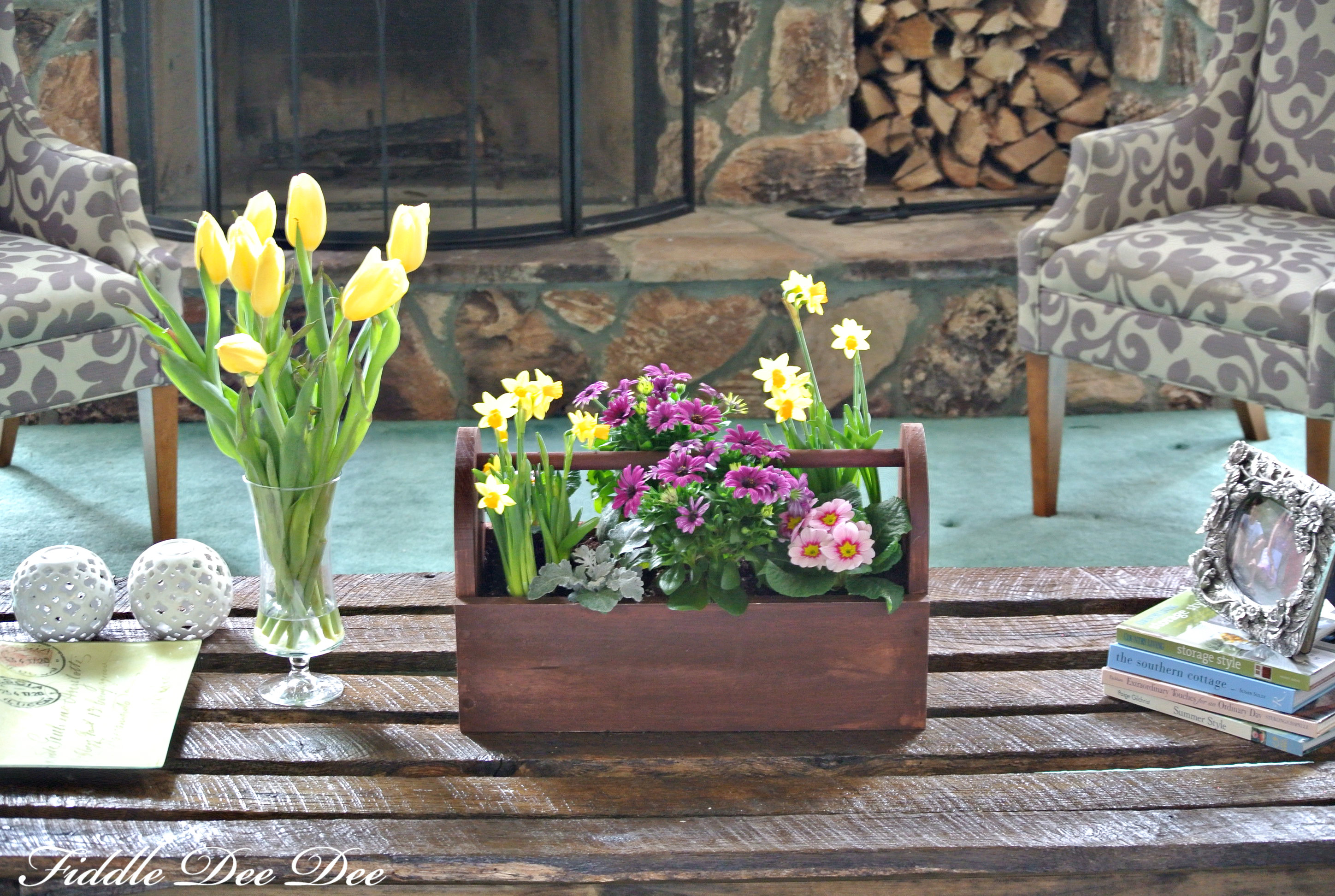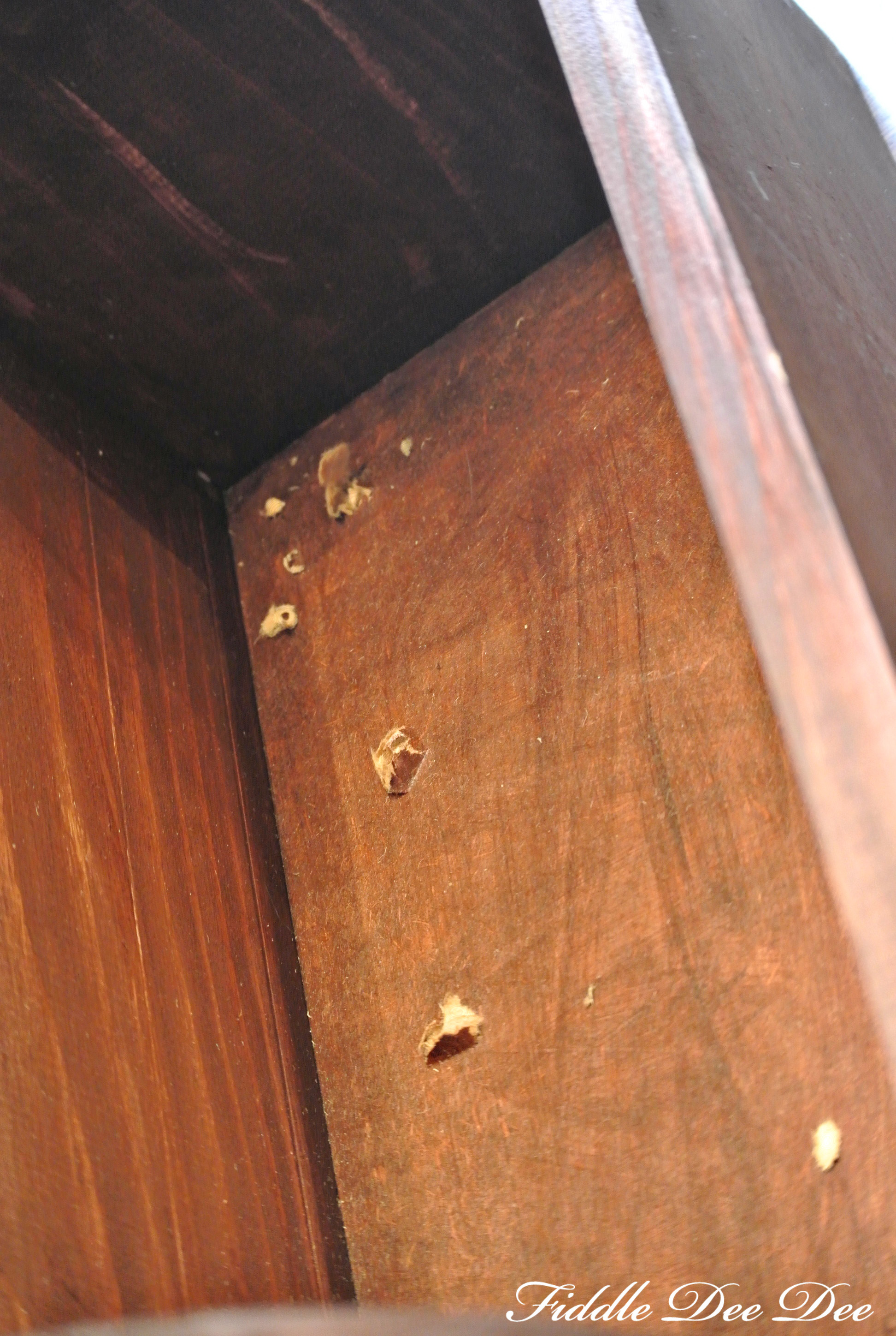 For this little project I took a tool caddy that I assembled & stained from a kit that Home Depot donated to the attendees at last years Haven Conference in Atlanta. Audley drilled holes in the base of the box for drainage purposes.
