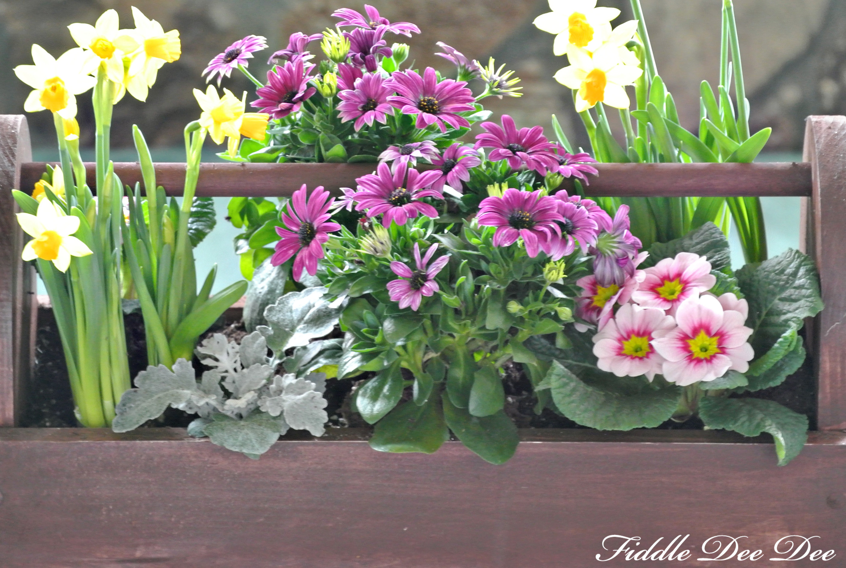 Choosing a few early spring plants that included miniature daffodils, primrose, African daisy and a silver leaf annual, I was able to play in the dirt and enjoy a bit of gardening without putting myself in a position that the doctor definitely would not approve! Making an indoor garden box was super easy and fairly quick to put together.