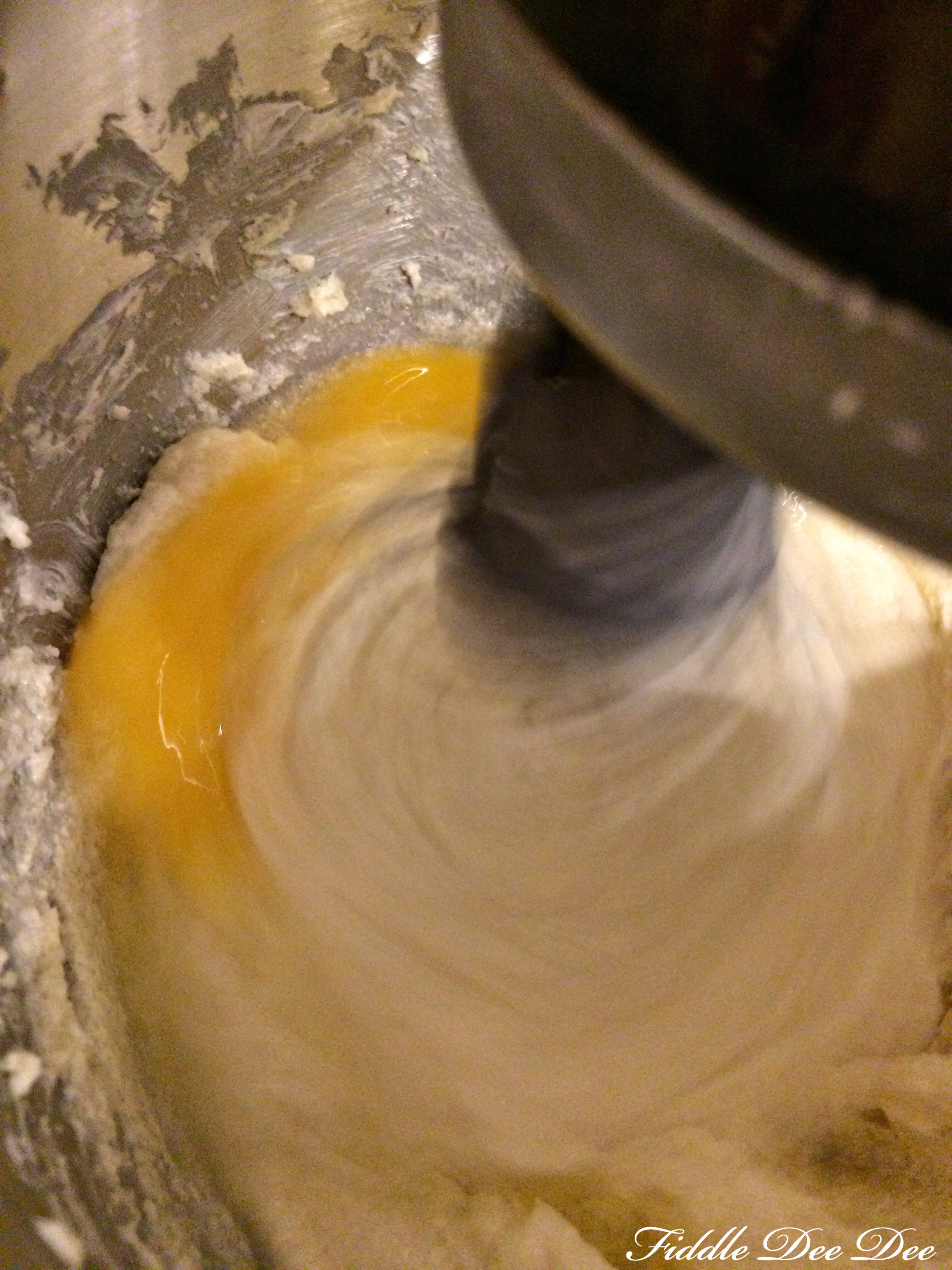 1. Beat butter and cream cheese at medium speed for two minutes or until creamy. Gradually add sugar, beating 5-7 minutes. Add eggs one at a time, beating just until yellow disappears.