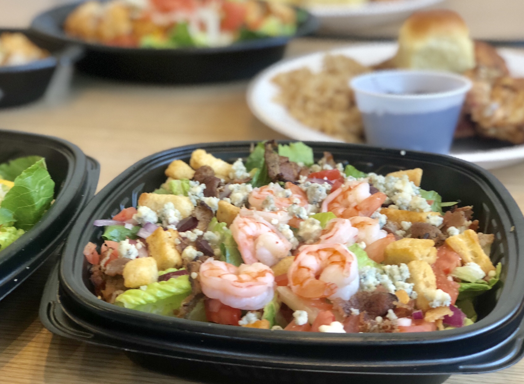For lighter fare, the bacon-shrimp salad served with dressing hits the spot. The shrimp is also marinated in the citrus marinade and then boiled.