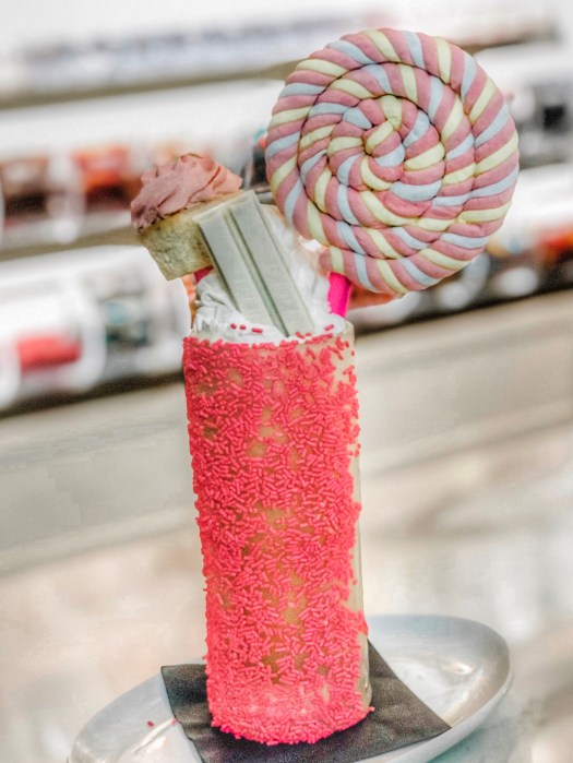 Last night I was able to taste a few items from the menu including bruschetta, the Big Cheesy (this one includes macaroni and cheese), shrimp, several drinks and of course I couldn’t go without sampling a fabulous over-the-top-milkshake!
