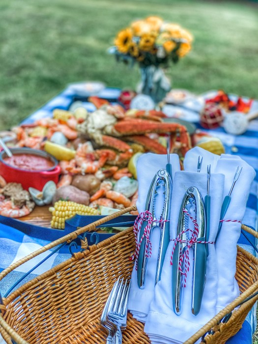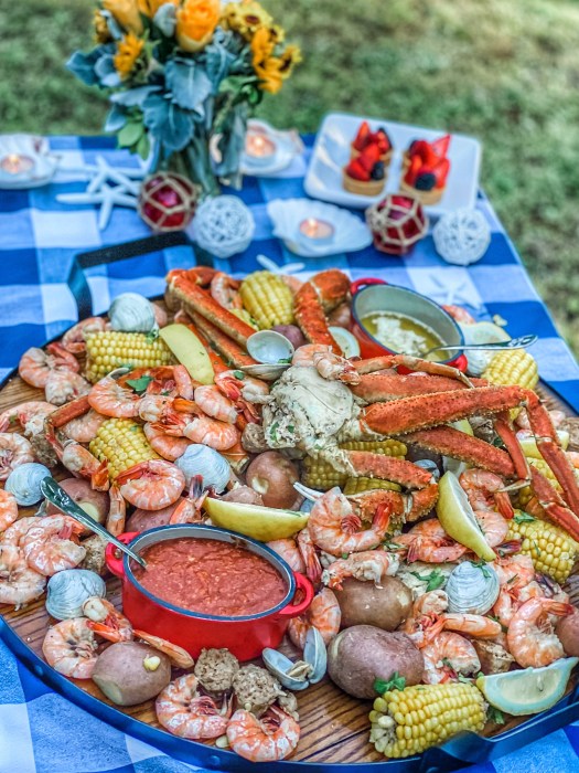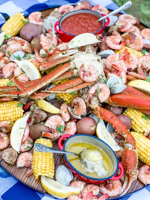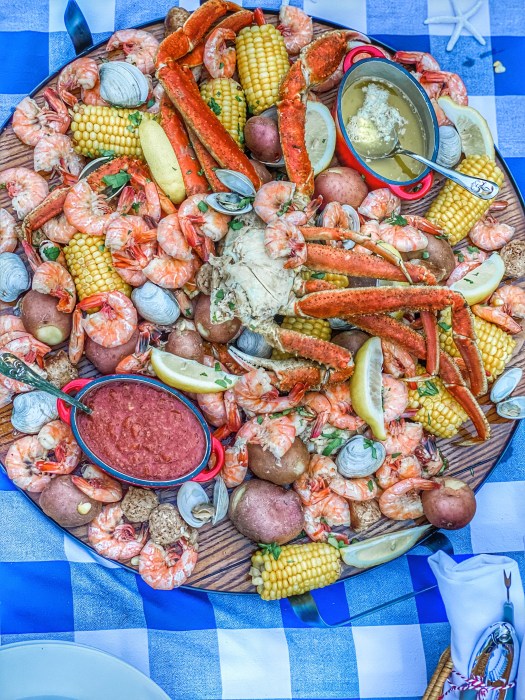 I just love seafood, so a low country boil is one of my favorite ways to serve it up. Plus it’s so easy to pull together as you can make it as fancy or simple as you like! While dining outside is preferable, you can always bring this taste of the southern coast indoors. The best part of preparing a low country boil is it’s a one pot deal!